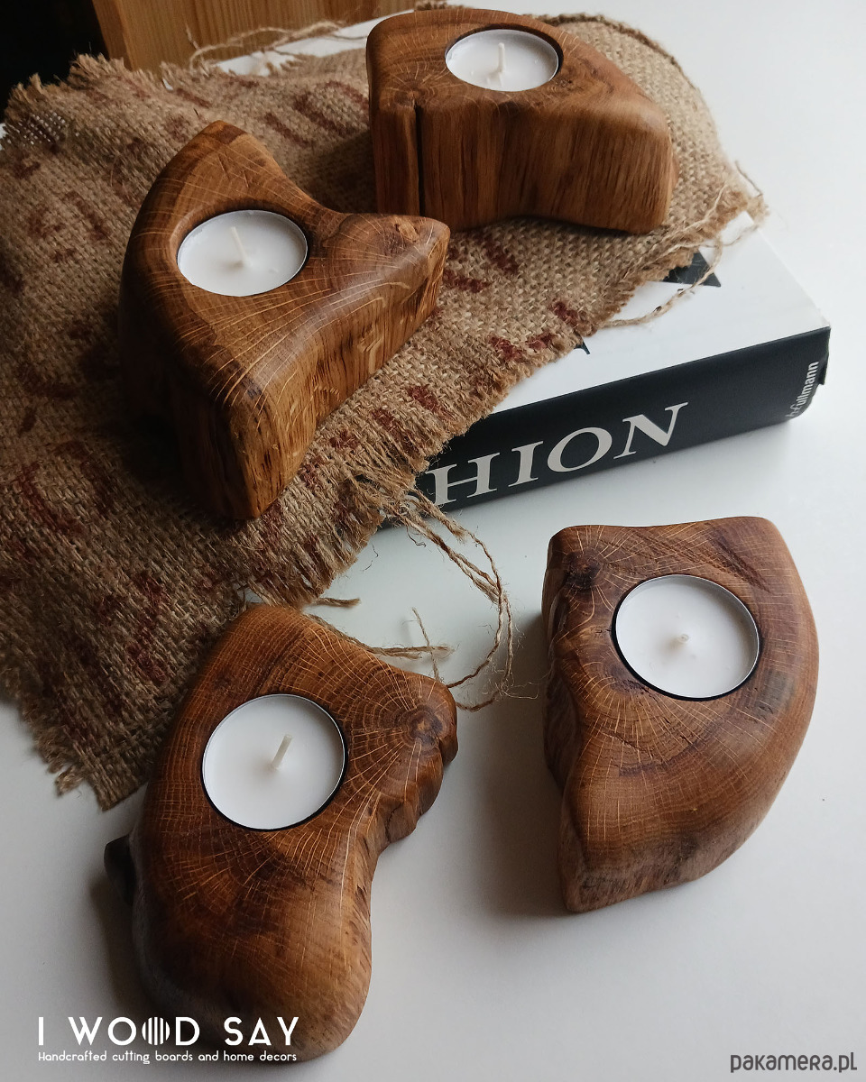 Zestaw dębowych świeczników