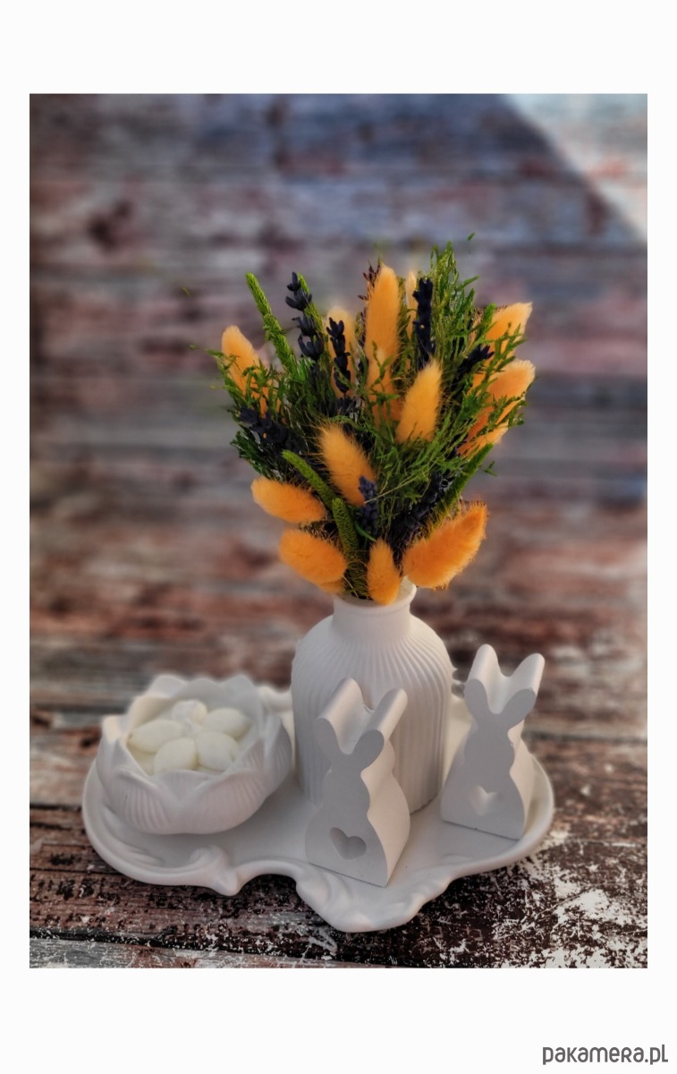 Ręcznie wykonany z miłością i troską, ten zestaw będzie piękną ozdobą świątecznego stołu lub wyjątkowym prezentem na Wielkanoc.