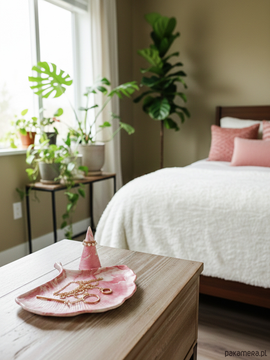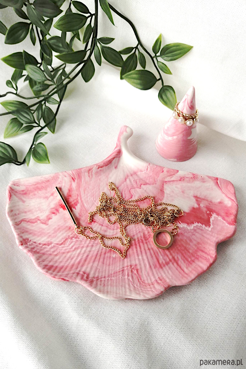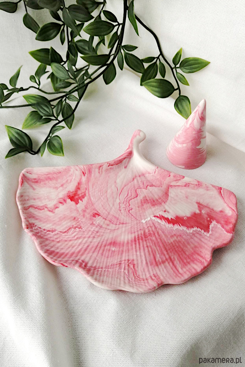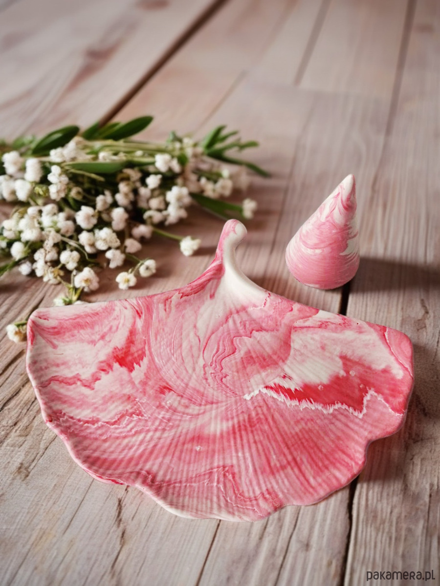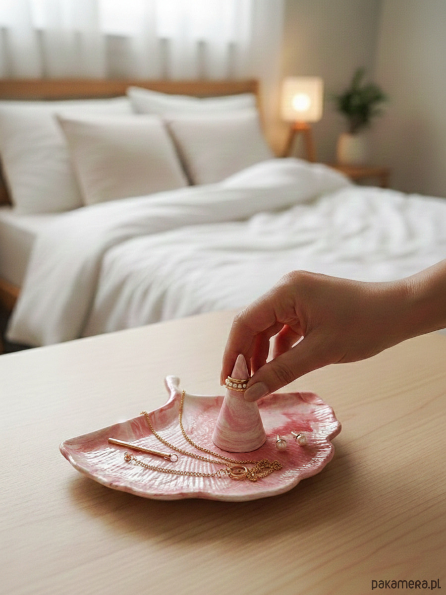 Zestaw dekoracyjny z gipsu polimerowego to nie tylko piękny dodatek, ale również funkcjonalny organizer. Podstawka z motywem miłorzębu idealnie nadaje się do przechowywania biżuterii, kluczy, drobniaków czy innych codziennych przedmiotów. Stożek świetnie utrzymuje pierścionki i pomaga utrzymać porządek na toaletce, biurku czy półce.