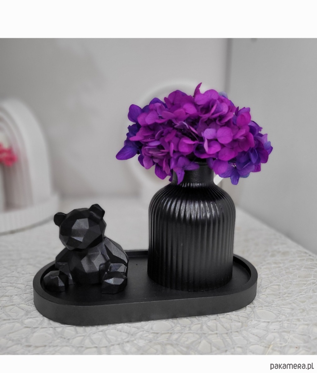 Ręcznie wykonany zestaw dekoracyjny z gipsu, ozdobiony delikatnymi kwiatami hortensji, to unikalna ozdoba, która wprowadzi do wnętrza niepowtarzalny klimat.