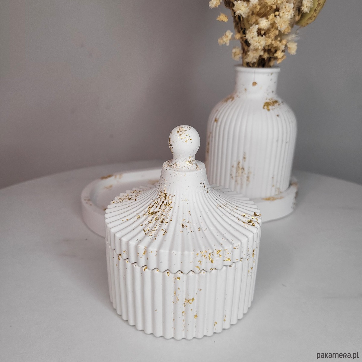 Gipsowa szkatułka z pokrywką do przechowywania drobiazgów.