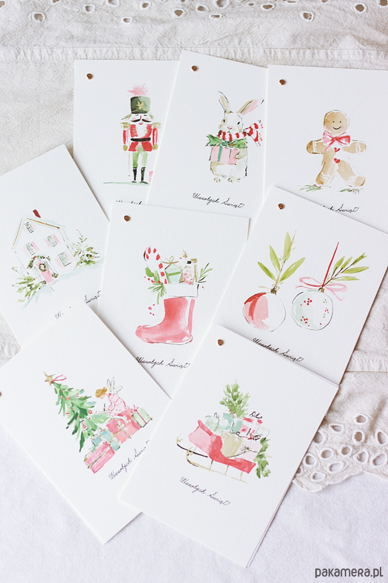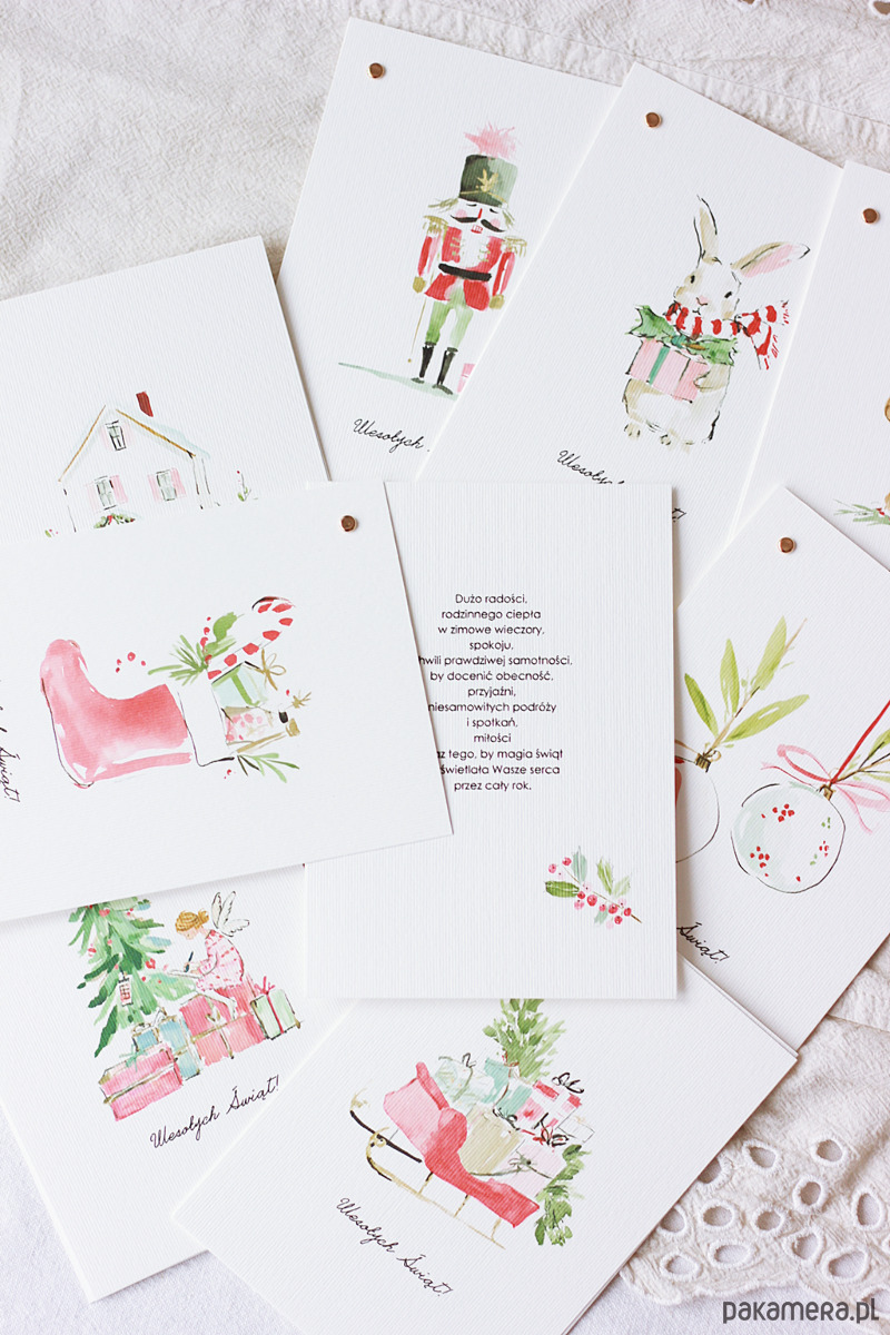 Zestaw 8 delikatnych kartek świątecznych. Prostych i eleganckich.