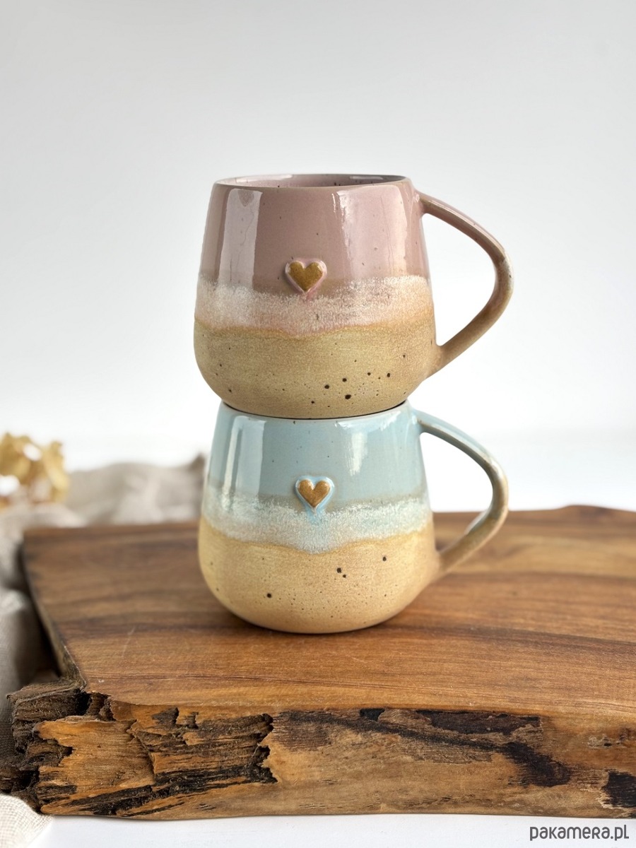 Zestaw dla dwojga - 2 x kubek ceramiczny z sercem - różowe i niebieskie migdały