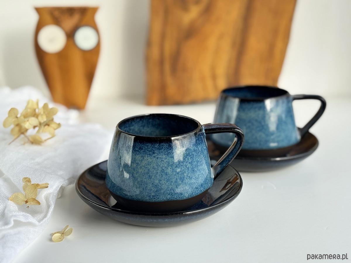 Zestaw dla dwojga - 2 niebieski filiżanki ze spodkami 250 ml - Niebo