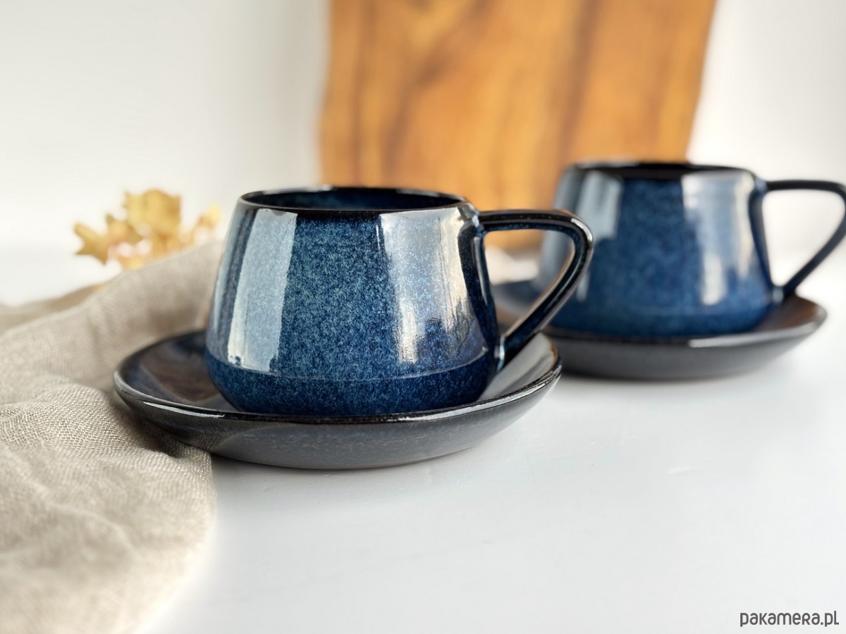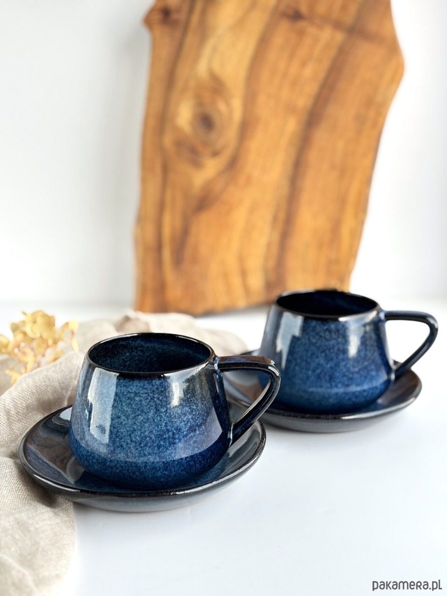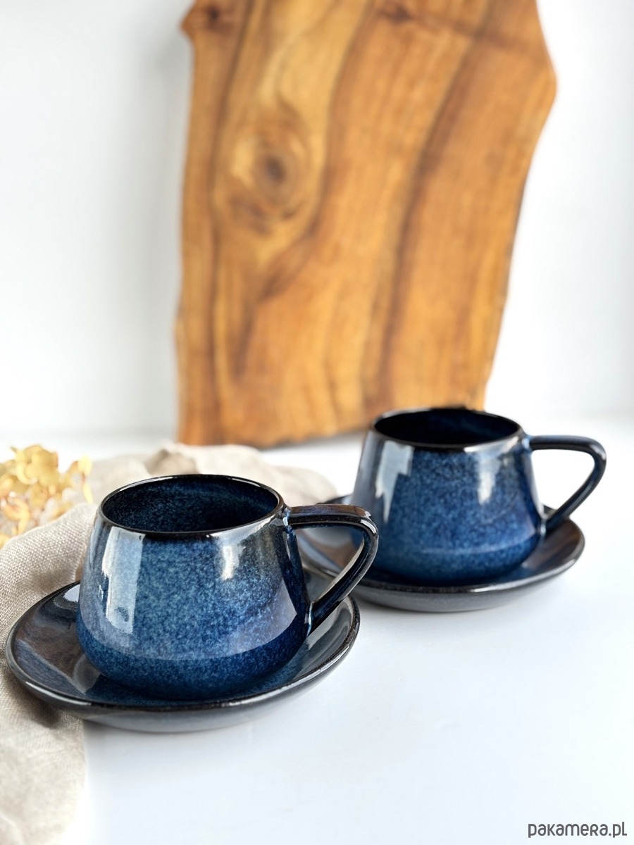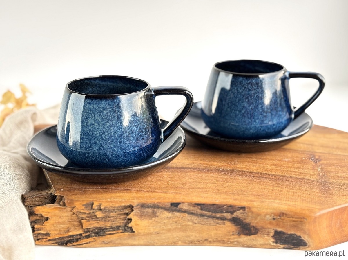 Zestaw dla dwojga - 2 x Ręcznie robiona filiżanka ceramiczna ze spodeczkiem z kolekcji Nocne niebo.