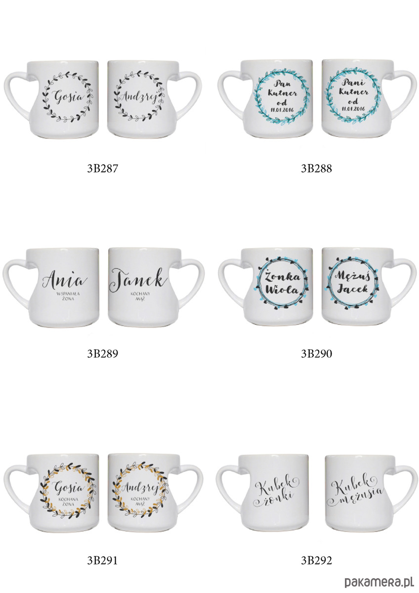 - imiona, w przypadku kubka 3B288 również datę ślubu