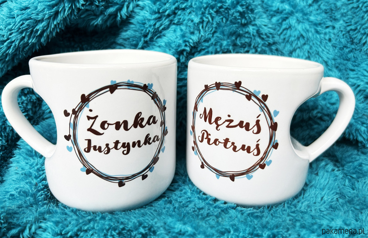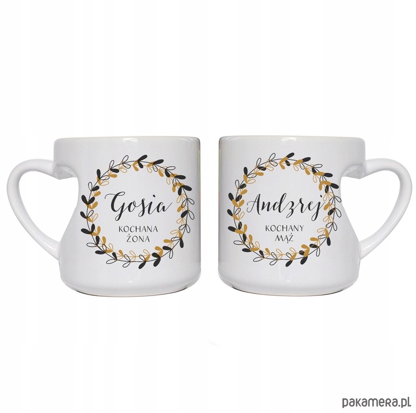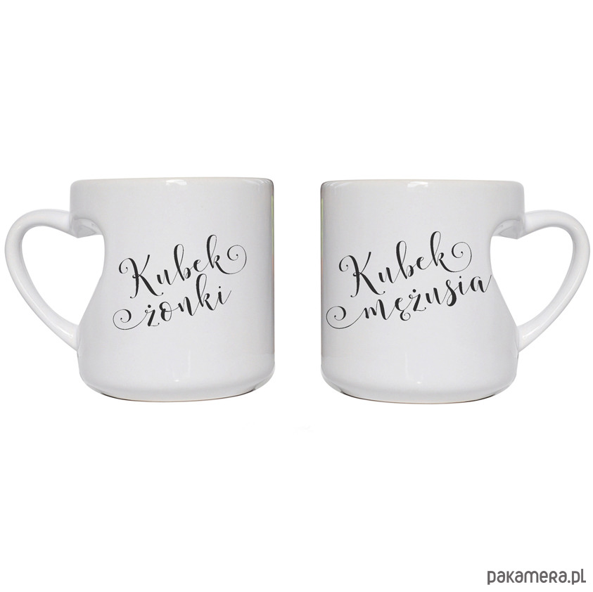 Piękny zestaw kubków dla małżeństwa lub pary na rocznicę ślubu czy walentynki. Kubki o pojemności 300ml bardzo dobrze się trzyma w ręce, są wygodne i pojemne z ciekawym napisem z obu stron. Kubki są najwyższej jakości, mogą być zmywane w zmywarkach lub ręcznie, opakowane w papierowe pudełko, idealnie nadaje się na prezent dla bliskiej osoby.