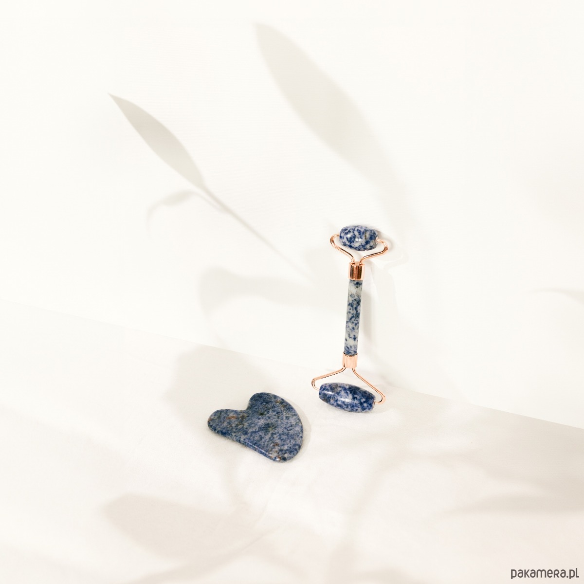 Zestaw do masażu twarzy z niebieskiego sodalitu: Gua Sha + Roller