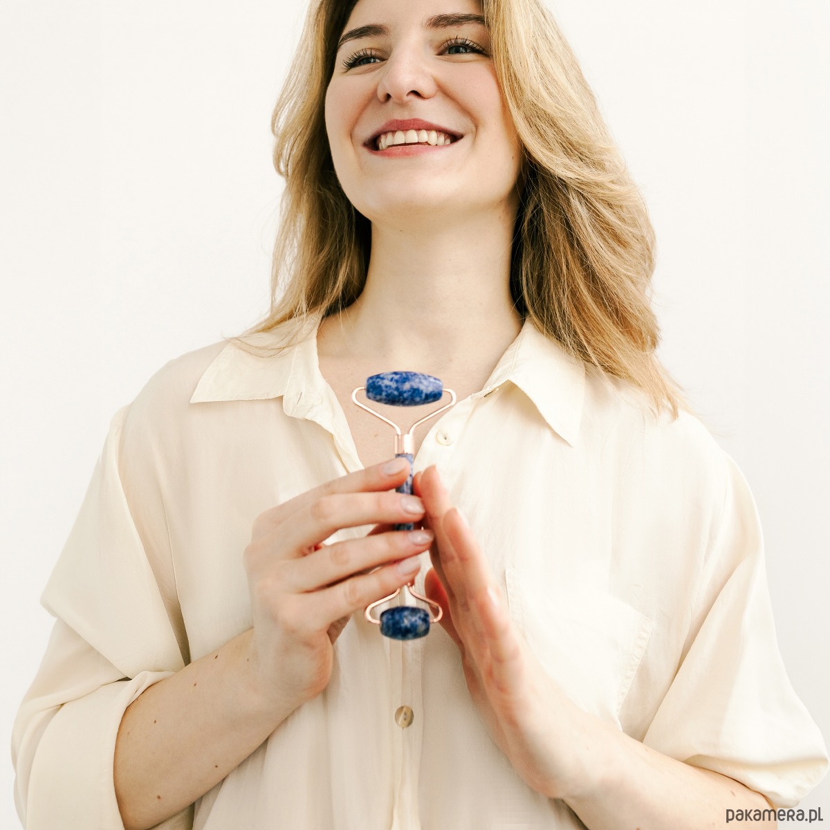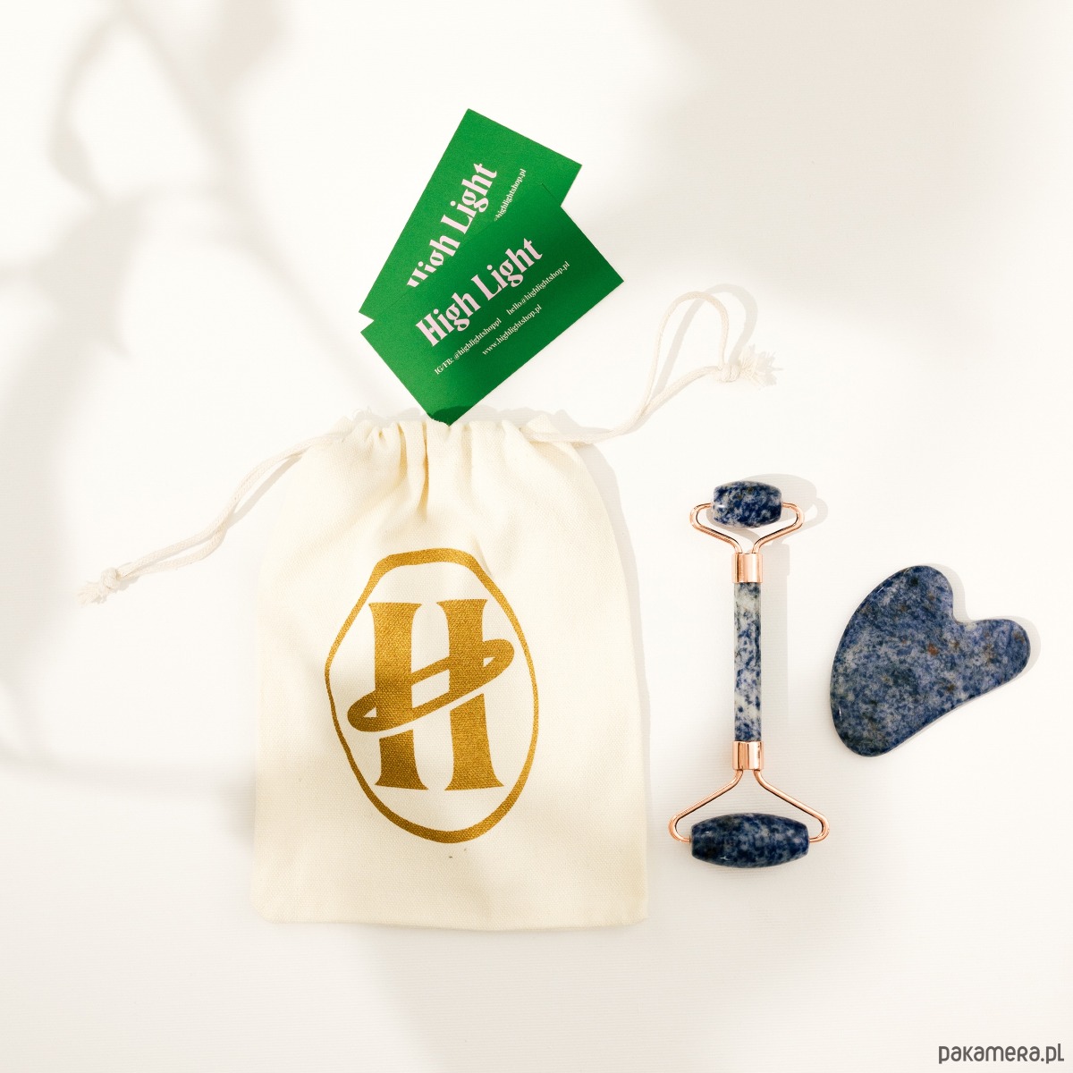 Poznaj odprężający rytuał domowego SPA z wykorzystaniem kamienia do masażu Gua Sha oraz Rollera z niebieskiego sodalitu. Wraz z zestawem otrzymasz bawełniany woreczek do przechowywania oraz bilecik z instrukcją masażu.