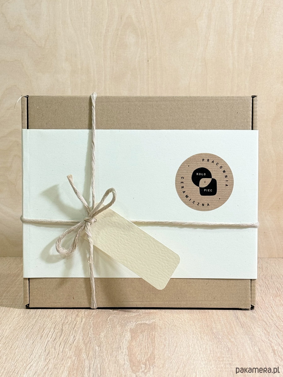 - Opakowanie prezentowe - kartonowe pudełko z grubym bawełnianym sznurkiem (ciemno zielonym i kremowym) i karteczką do podpisu. Pudełko zostanie dodatkowo owinięte w brązowy karton dla ochrony. Sznurki i karteczka będą w środku pudełka.