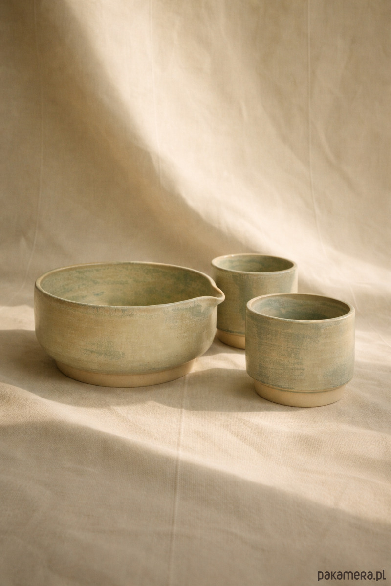 Ręcznie wykonany zestaw do matchy, stworzony z myślą o codziennym rytuale parzenia zielonej herbaty. Naczynia pokryte delikatnym szkliwem spożywczym w odcieniach zieleni i piasku, przywodzącym na myśl spokój natury. Można je bezpiecznie używać w zmywarce i mikrofalówce.