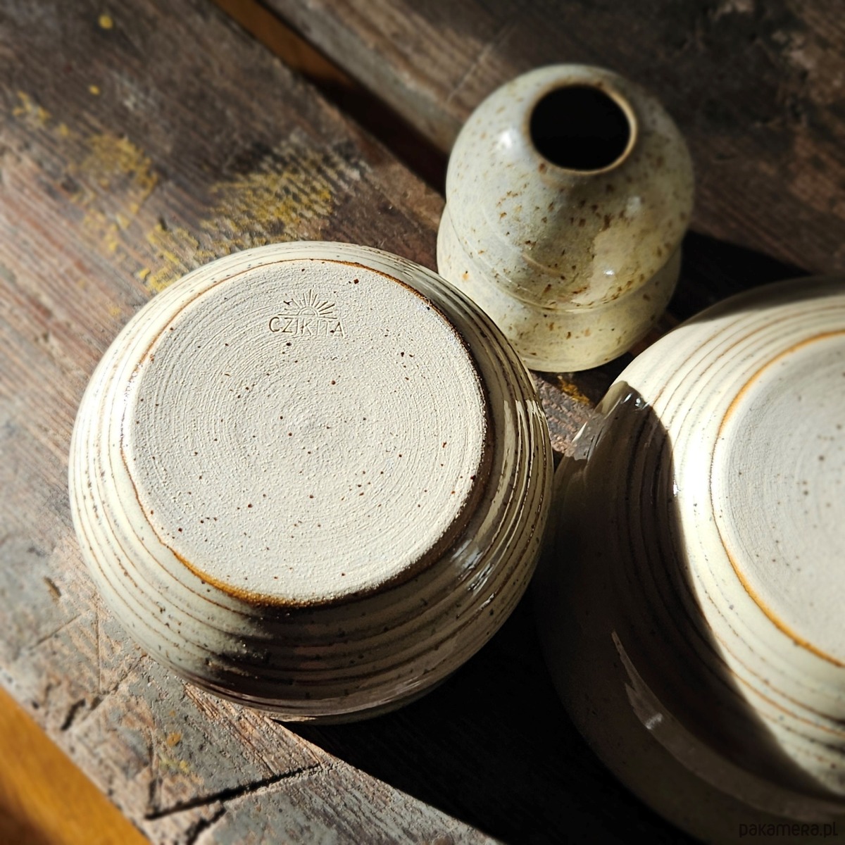 Naczynia zostały wytoczone na kole garncarskim i poszkliwione ręcznie szkliwem FOOD SAFE.