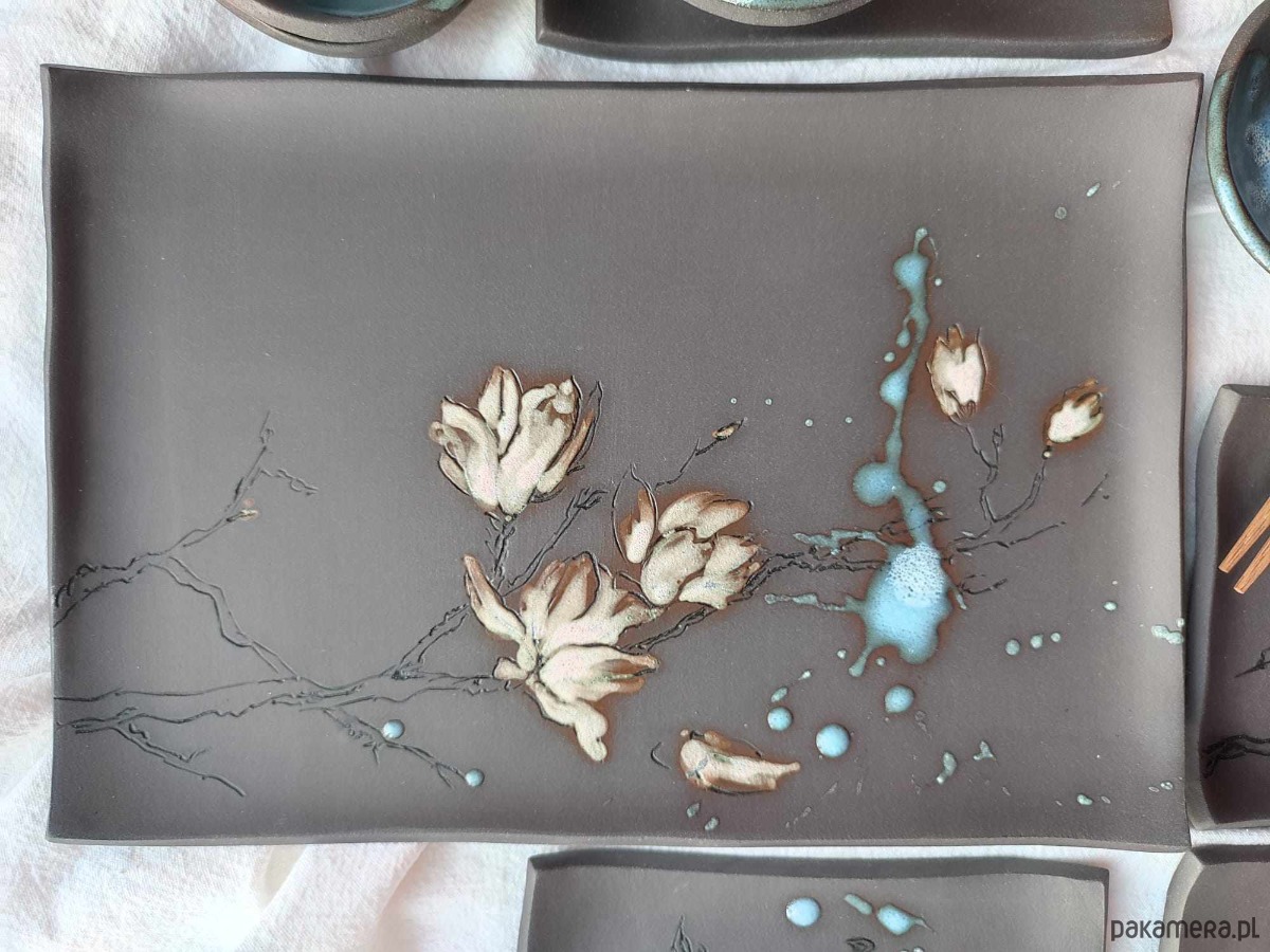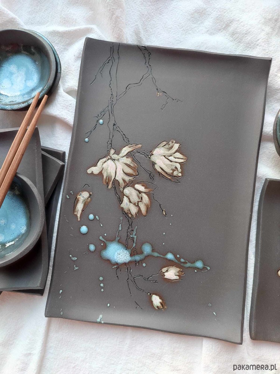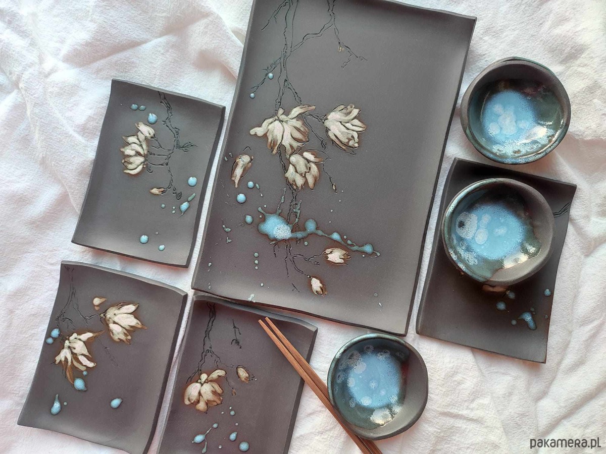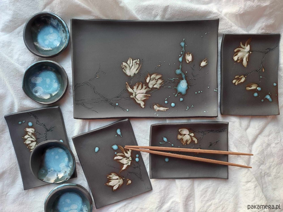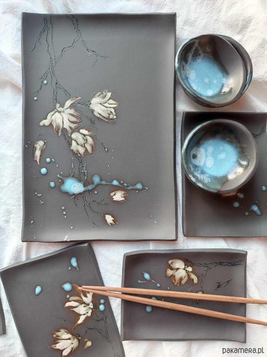 Ceramiczny ręcznie wykonany zestaw do sushi dla 4 osób
