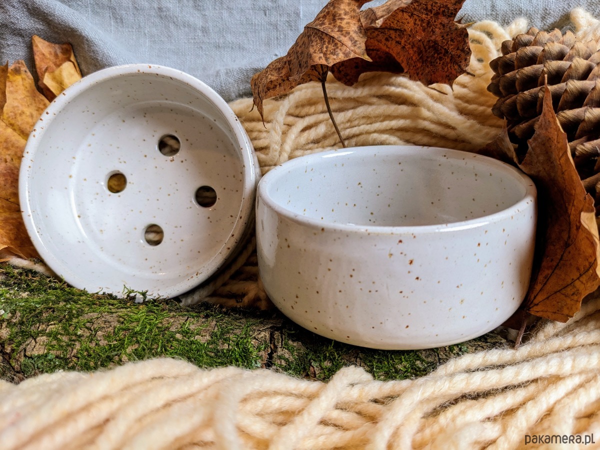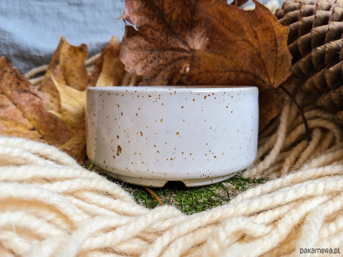 Doniczki zostały wytoczone na kole garncarskim, zachowując charakterystyczne, lekko nieregularne kształty, które dodają im naturalnego uroku. Głęboka relacja z naturą jest podkreślona przez zastosowanie białego szkliwa, które subtelnie pokrywa ich powierzchnię.
