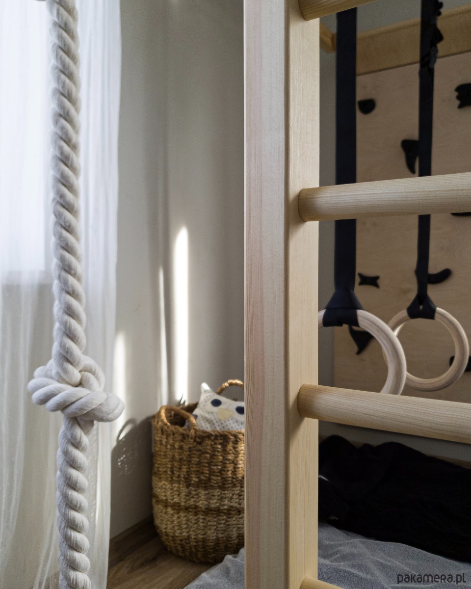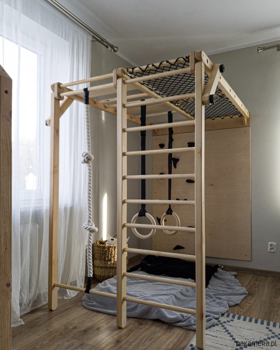 Zestaw drewnianych gimnastycznych drabinek marki WYSTRUGANY. Wykonany z dbałością o każdy detal, z drewna sosnowego oraz elementami bukowymi. Zestaw można złożyć i zawiesić na uchwycie przy ścianie.
