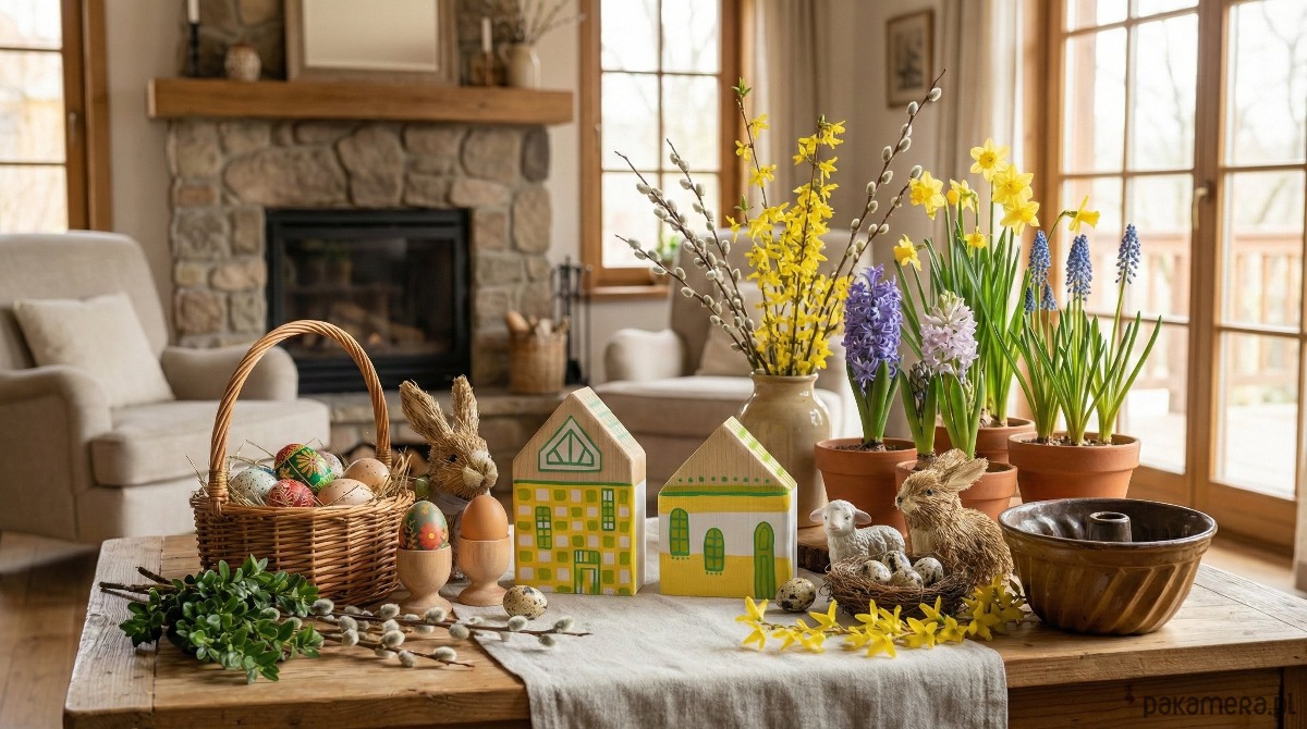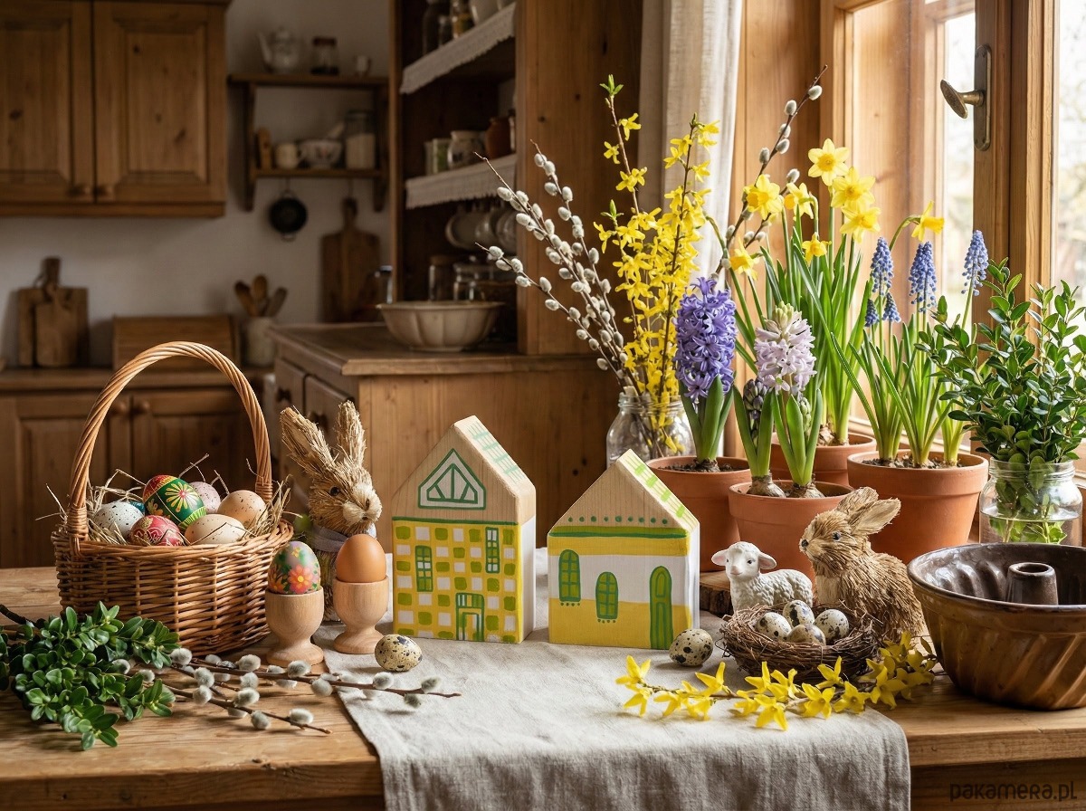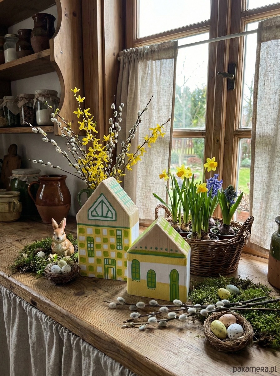 Zestaw drewnianych domków (Wiosenne, WIelkanocne)