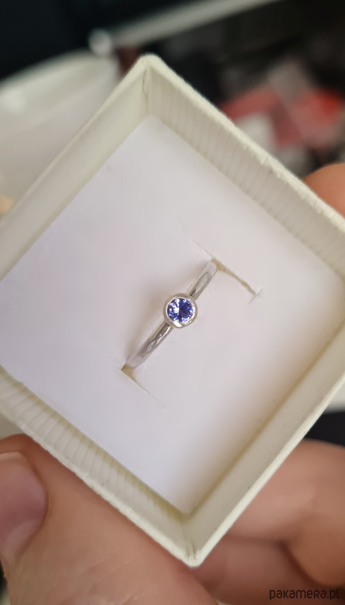 Dwa pierścionki: z szafirem (kamień ok. 2,5 mm), oraz z tanzanitem (kamień ok. 3 mm).