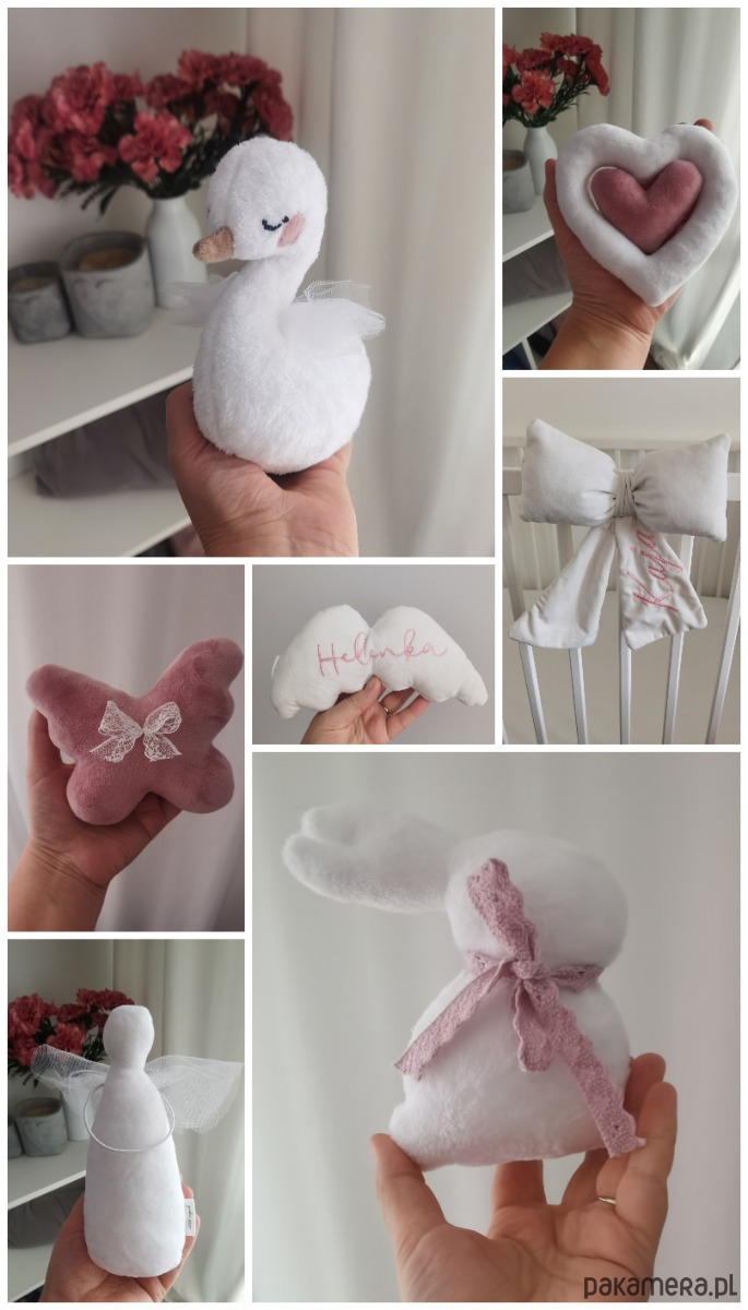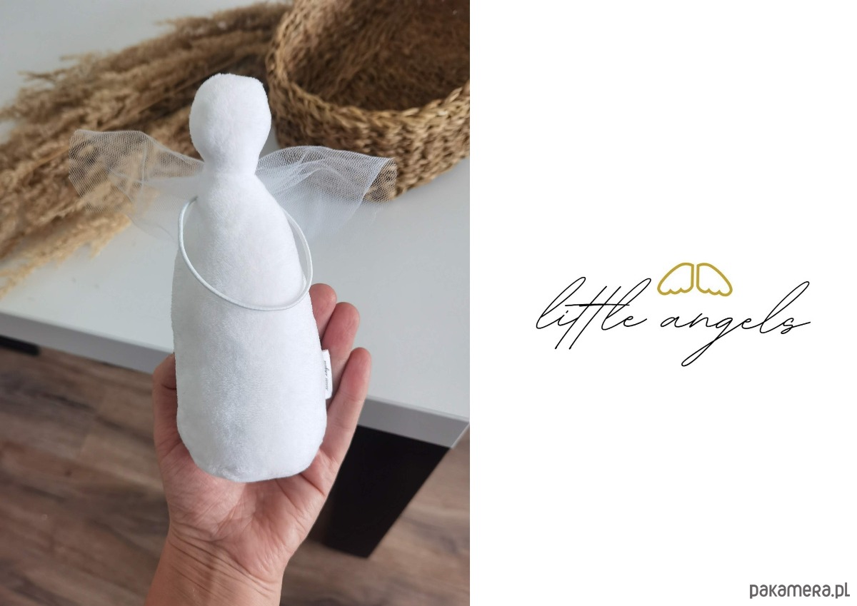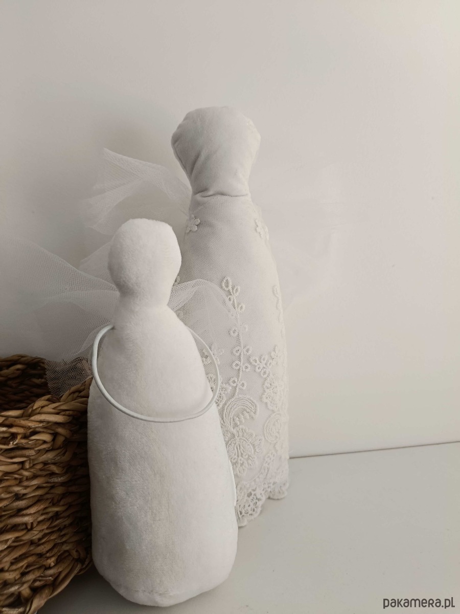 Szukasz prezentu dla bliskiej osoby? Wykonujemy anioły na zamówienie. Mogą być stojące lub bardziej płaskie i do powieszenia na ścianie. Wykonane zarówno z bawełny jak i velvetu, minky. Aniołki zdobimy koronką, tiulem lub robimy gładkie z napisem np imieniem, inicjałami. Napis może być na sukience lub skrzydłach. Wszystkie szczegóły jak tkaniny, czcionka, jej kolor, dodatki do uzgodnienia. Aniołka pakujemy w ozdobny kartonik na którym możemy umieścić dowolną dedykację.
