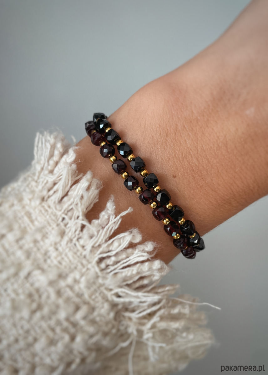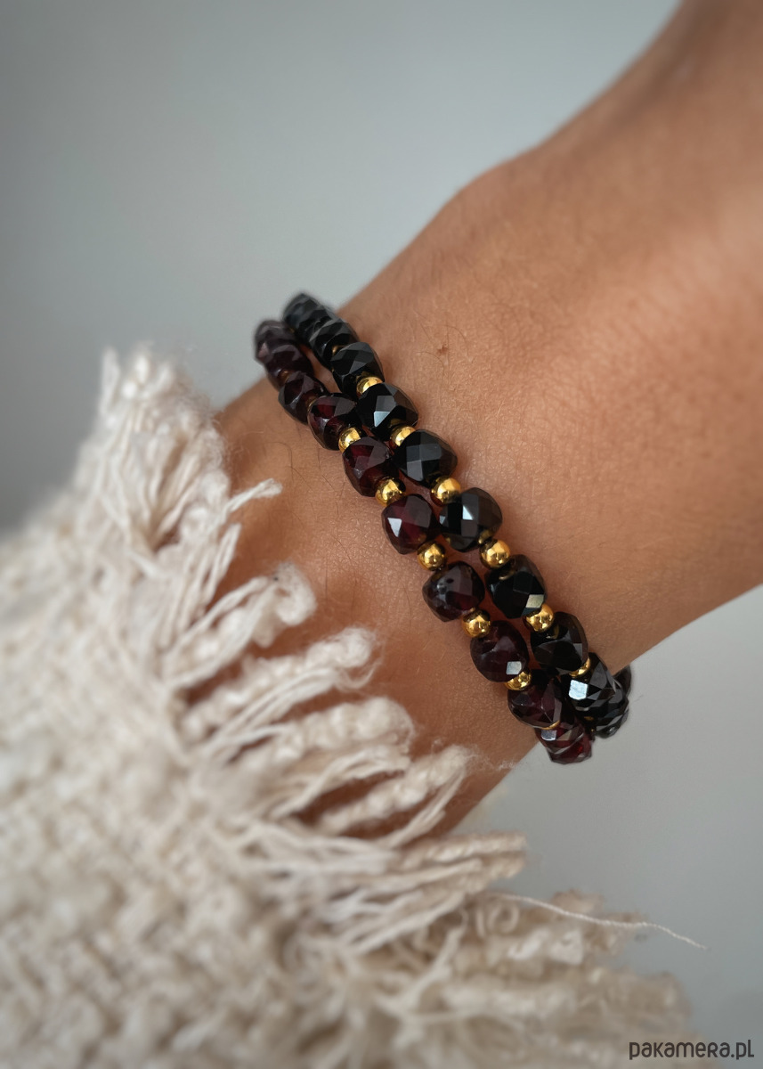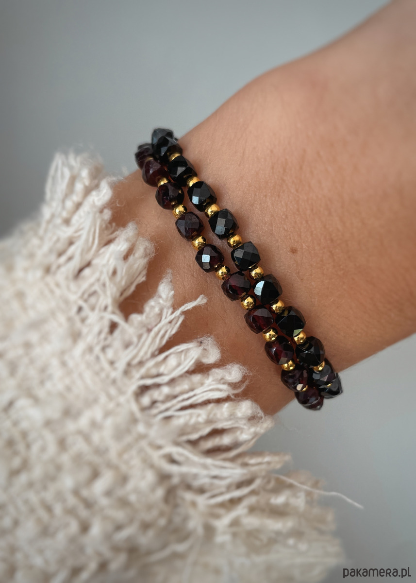 Wielkość kamieni hematytu: ok. 2 mmTrzy długości bransoletki do wyboru (Podane długości to obwody nadgarstka, bransoletka będzie miała około 1 cm więcej):- 15 cm - 16 cm- 17 cmBransoletka stworzona z połączenia przepięknego Granatu oraz Czarnego turmalinu. Pięknie prezentuje się na ręce, pasuje do wielu stylizacji. Bransoletki są wykonywane własnoręcznie z dbałością o najdrobniejsze szczegóły, dzięki czemu gwarantujemy najwyższą jakość.Granat to kamień dla nieśmiałych, osób wzbraniających się przed wyjściem z własnej strefy komfortu. Ma dodawać odwagi, pomóc w podejmowaniu ciężkich decyzji, przeprowadzać przez życiowe zmiany. Jest budulcem pewności siebie i śmiałości. Czarny turmalin chroni przed działaniem negatywnej energii.Dodaje pewności siebie, poprawia koncentrację oraz pamięć. Porządkuje myśli, pozwala na nabranie nowej perspektywy. Jest wsparciem przy wkraczaniu w nowy etap życia..