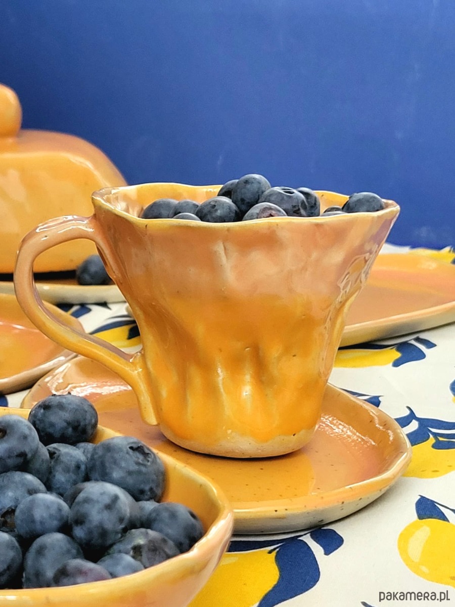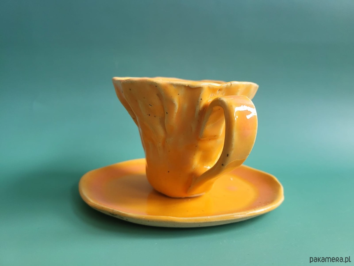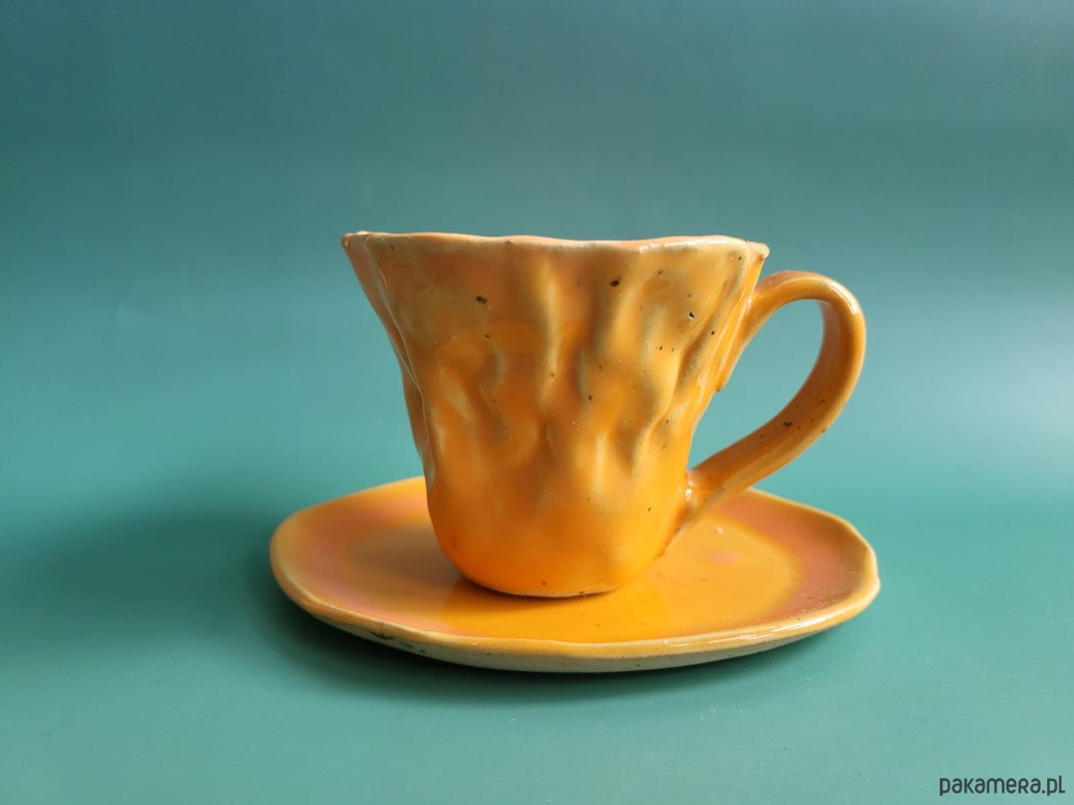 Zestaw dwóch ceramicznych filiżanek z talerzykami polskie rękodzieło