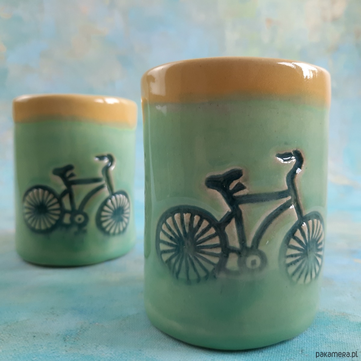 Zestaw dwóch ceramicznych kubków dla rowerzysty/handmade