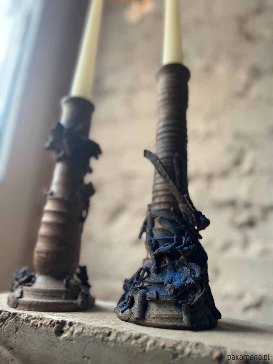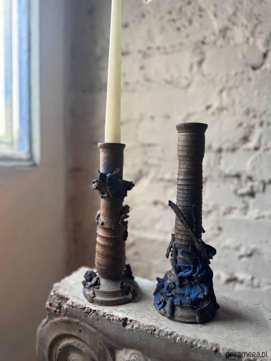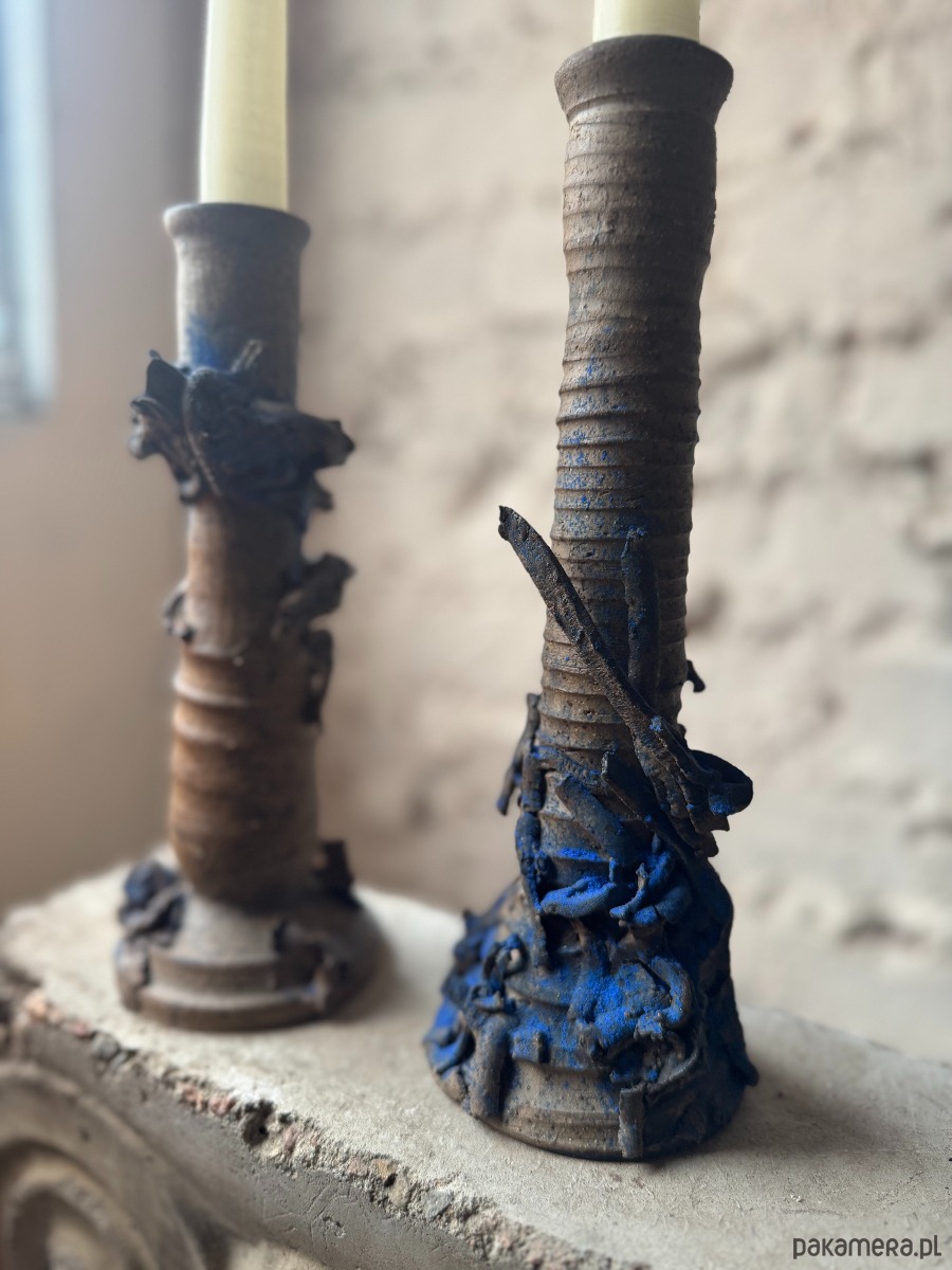 Zestaw dwóch ceramicznych świeczników - unikaty