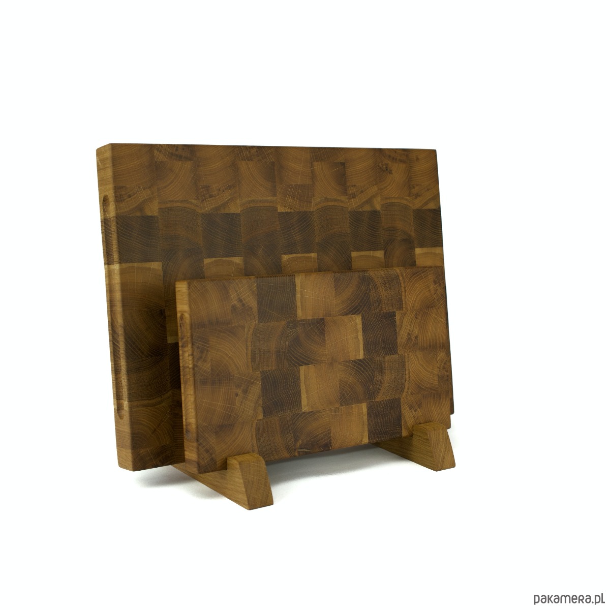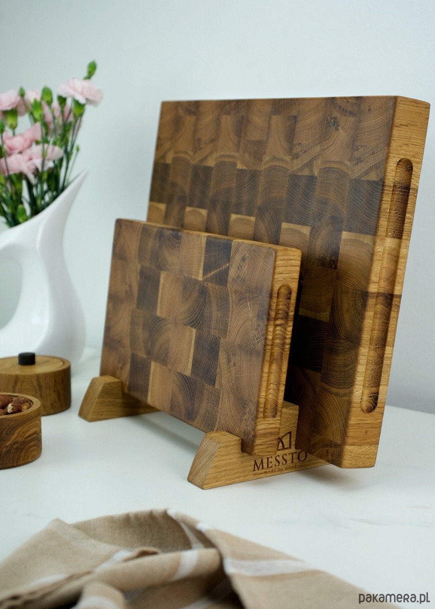 To świetne rozwiązanie dla osób ceniących sobie niepowtarzalne wzory oraz uniwersalne dodatki w kuchni. Bardzo odporne na zarysowania, praktyczne zarówno do krojenia jak i serwowania potraw. To idealny zestaw również na prezent dla osoby, która uwielbia gotować. Zarówno deski jak i stojak zostały wykonane z drewna dębowego wysokiej jakości i zajmują niewiele miejsca.
