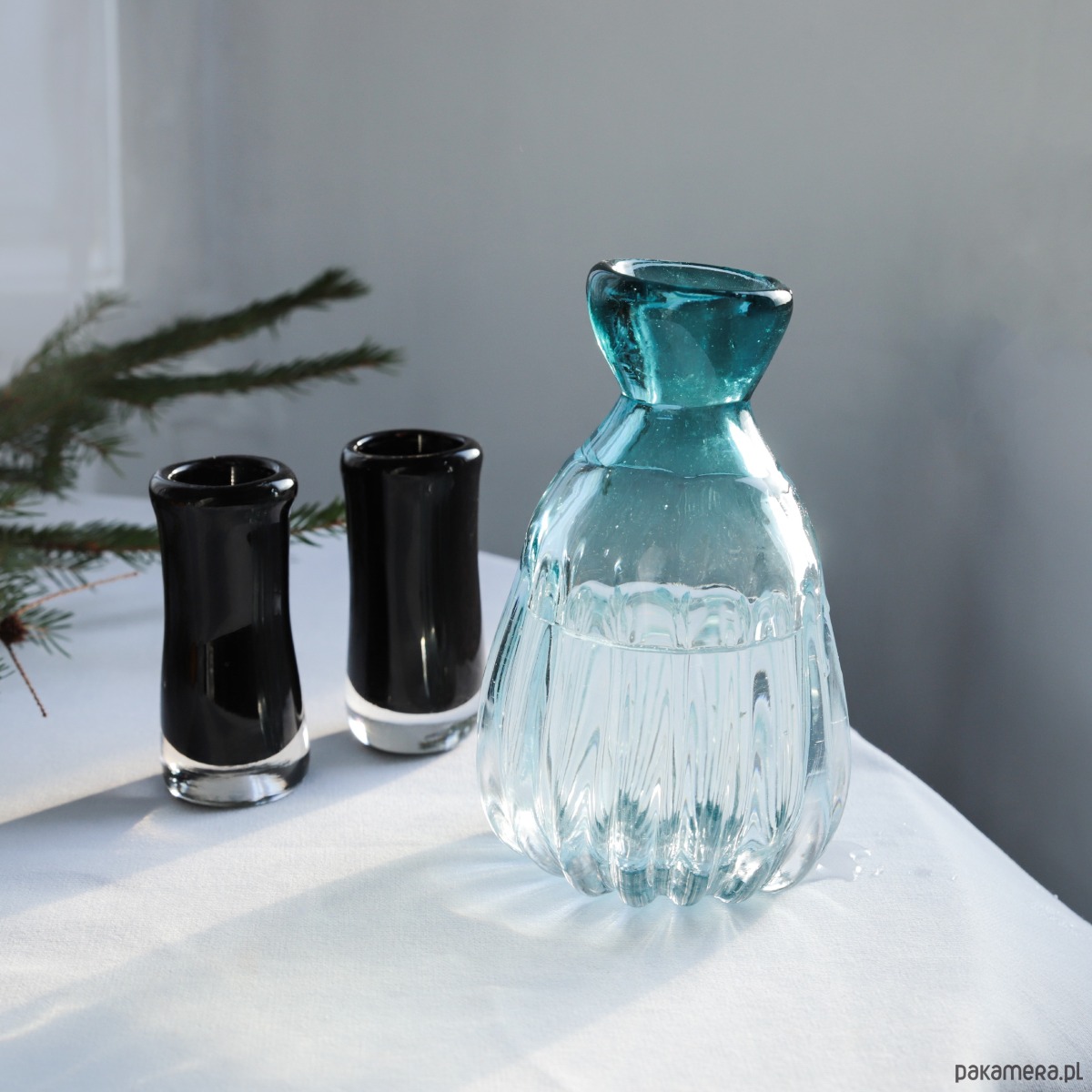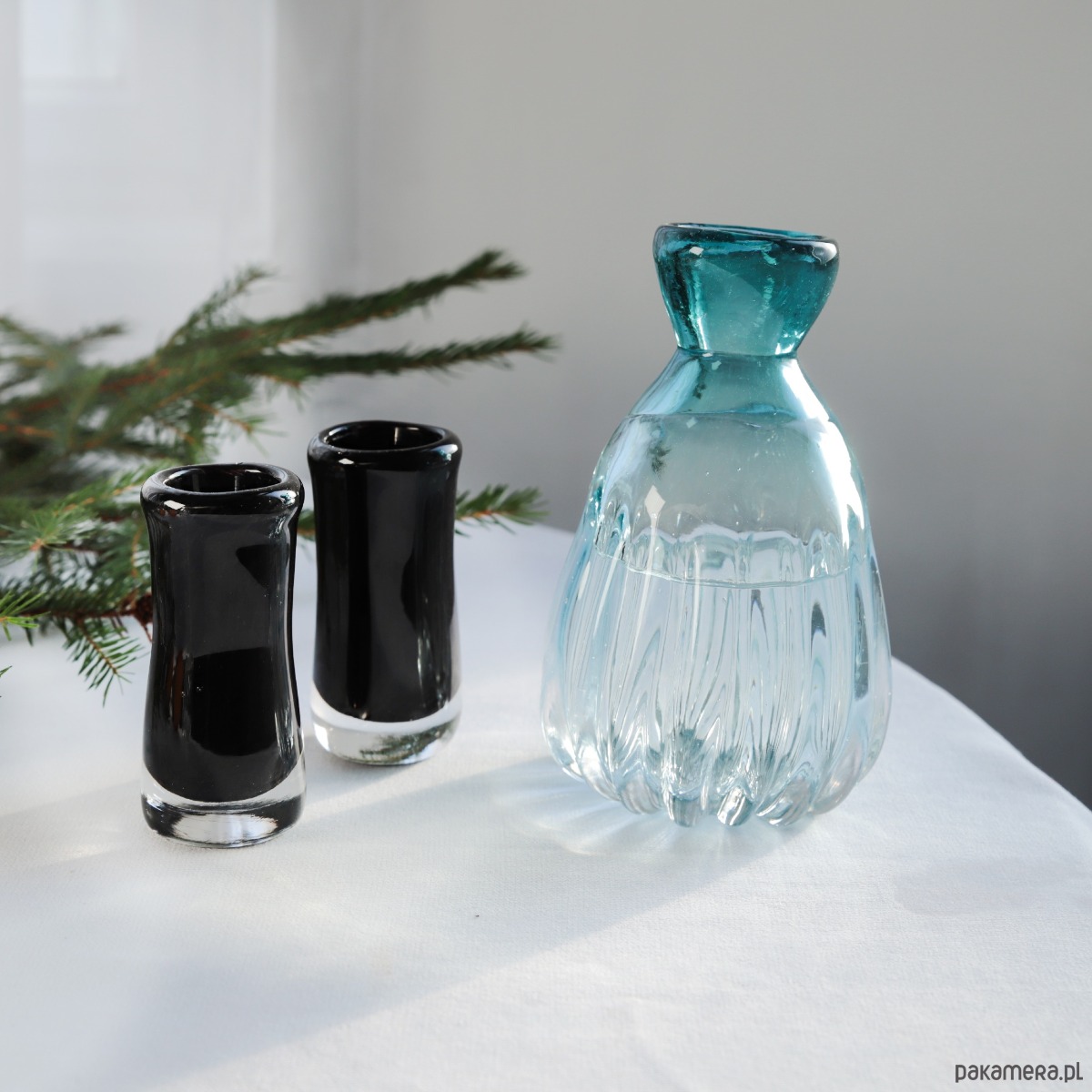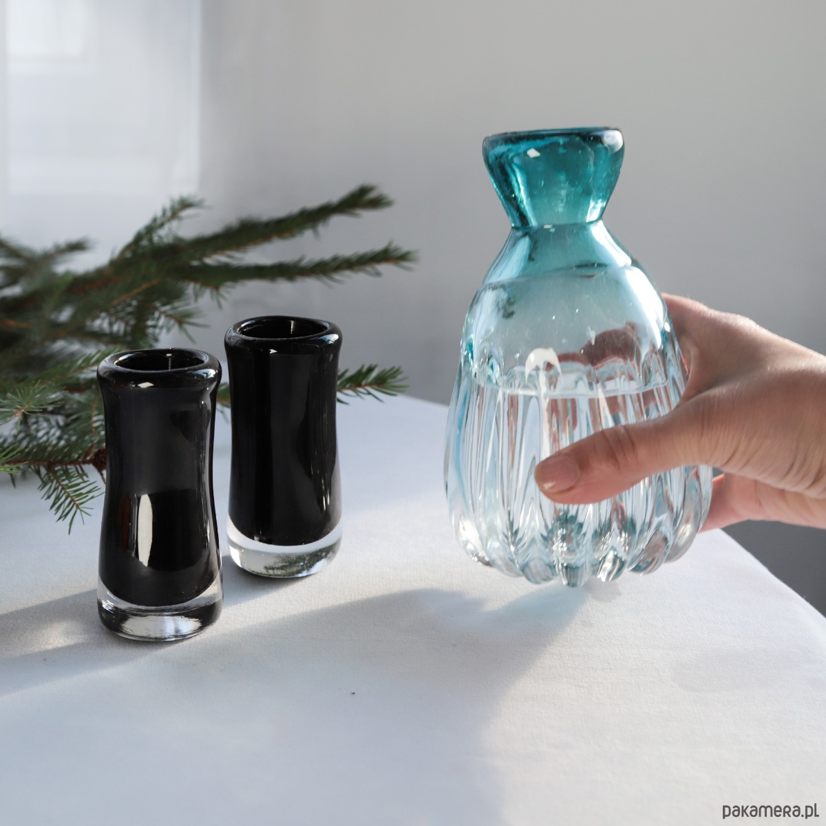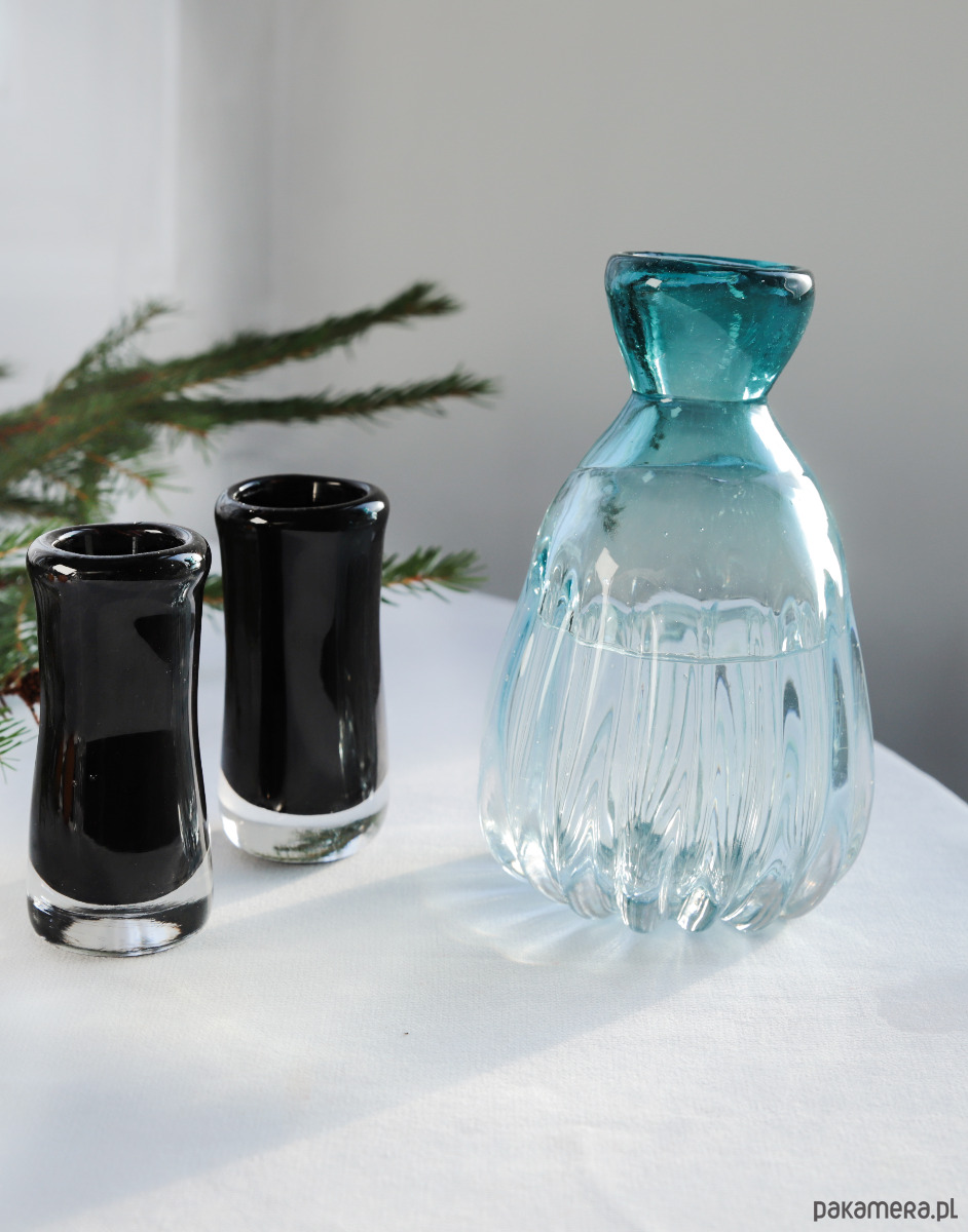 Kieliszki i karafka idealne leżą w dłoni.
