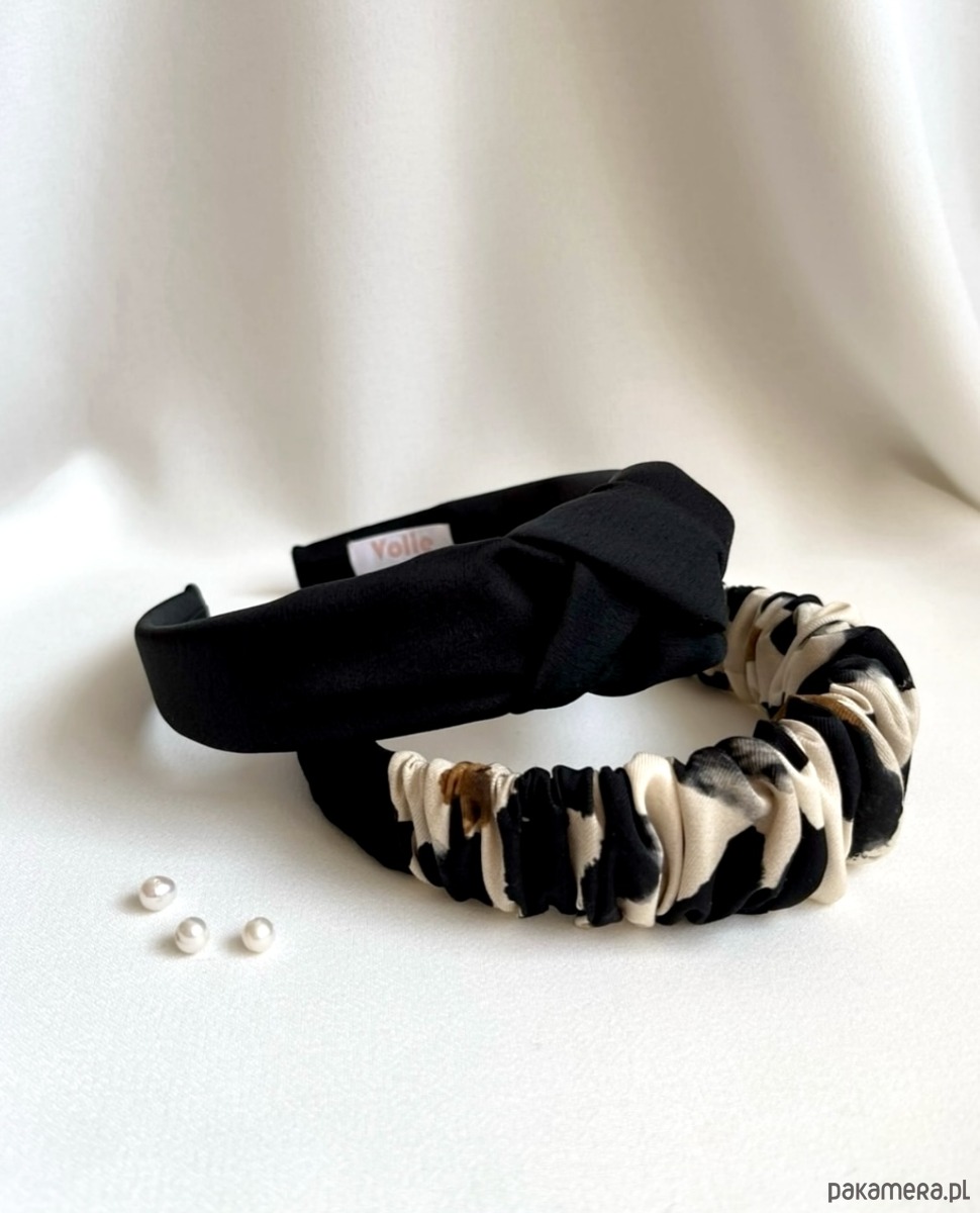 Ten zestaw składa się z dwóch opasek - czarnej klasycznej opaski supełkowej oraz marszczonej opaski Bruny w bardziej abstrakcyjny wzór. Każda z nich jest niezwykle efektowna i z pewnością przyciągnie wiele spojrzeń.