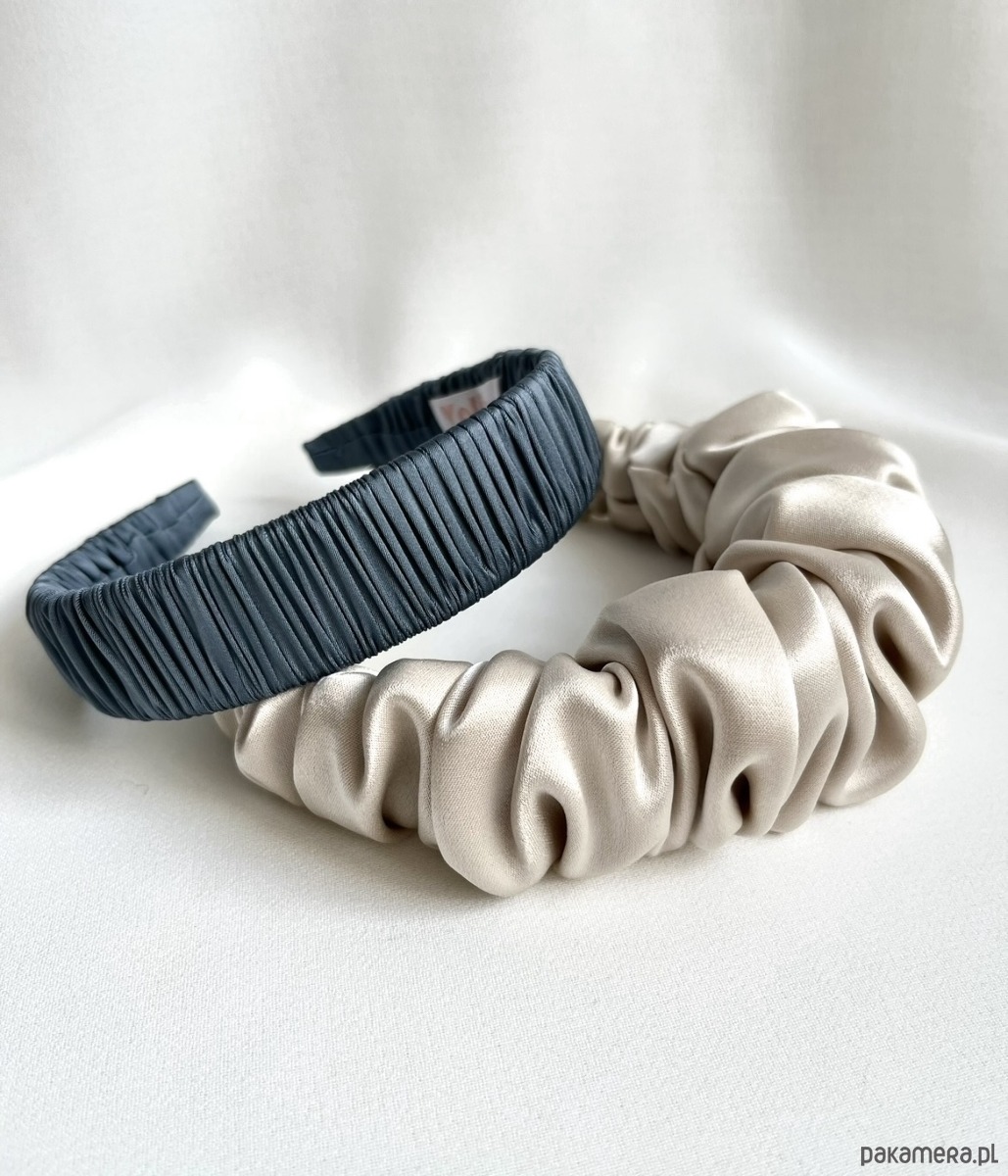 Ten zestaw składa się z dwóch opasek - mocno marszczonej płaskiej niebieskiej opaski Ella oraz marszczonej opaski Alva maxi w perłowym stonowanym odcieniu. Każda z nich jest niezwykle efektowna i z pewnością przyciągnie wiele spojrzeń.