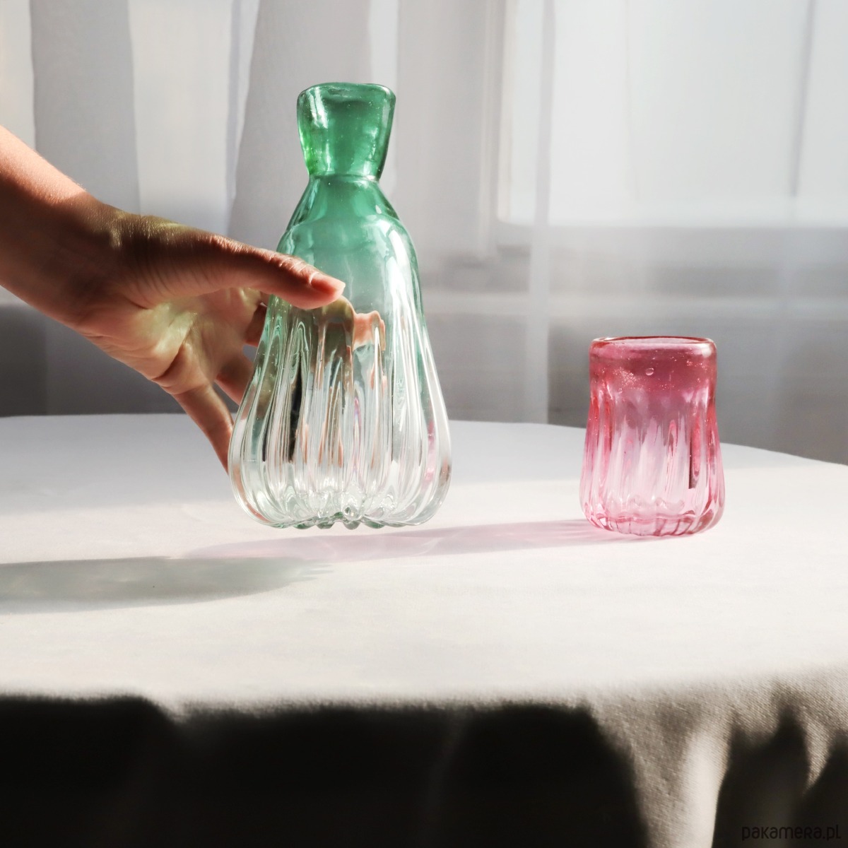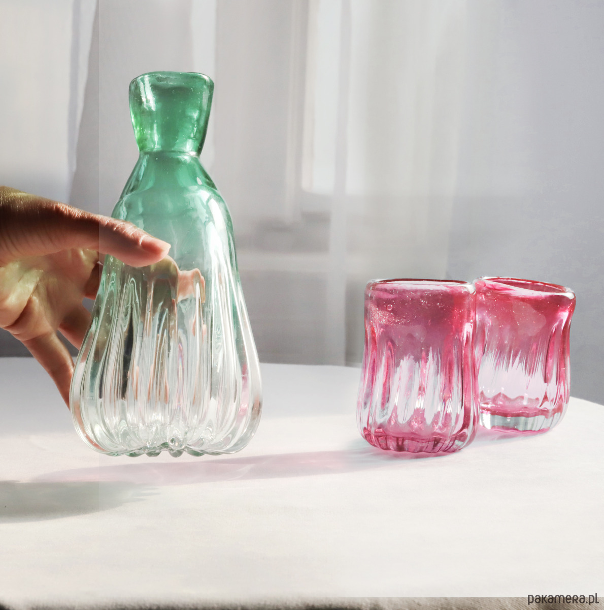 Nieregularne, poręczne szklanki i karafka idealne leżą w dłoni.