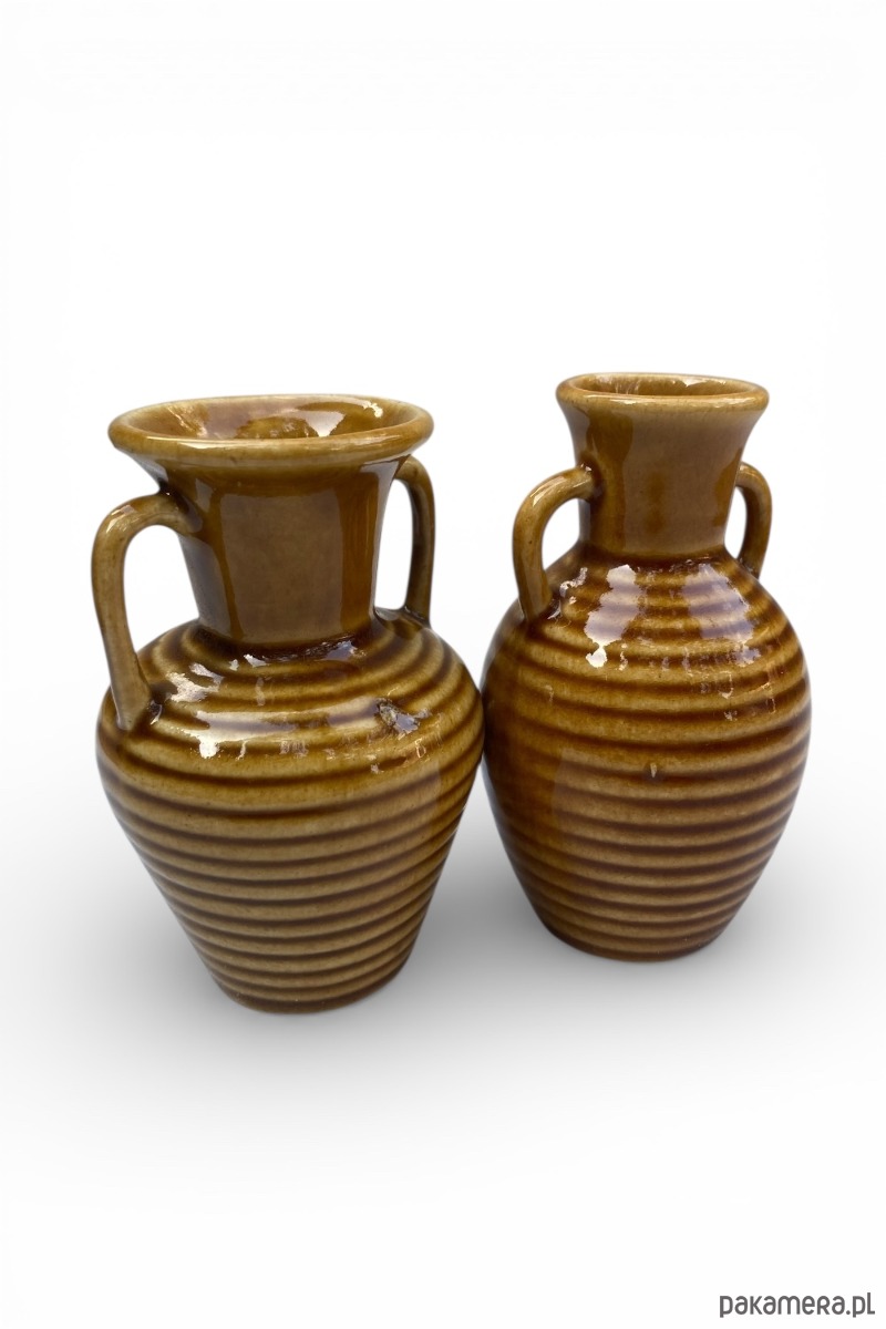 Dwa ceramiczne dzbanuszki. Wysokość 10 cm. Stan bardzo dobry.