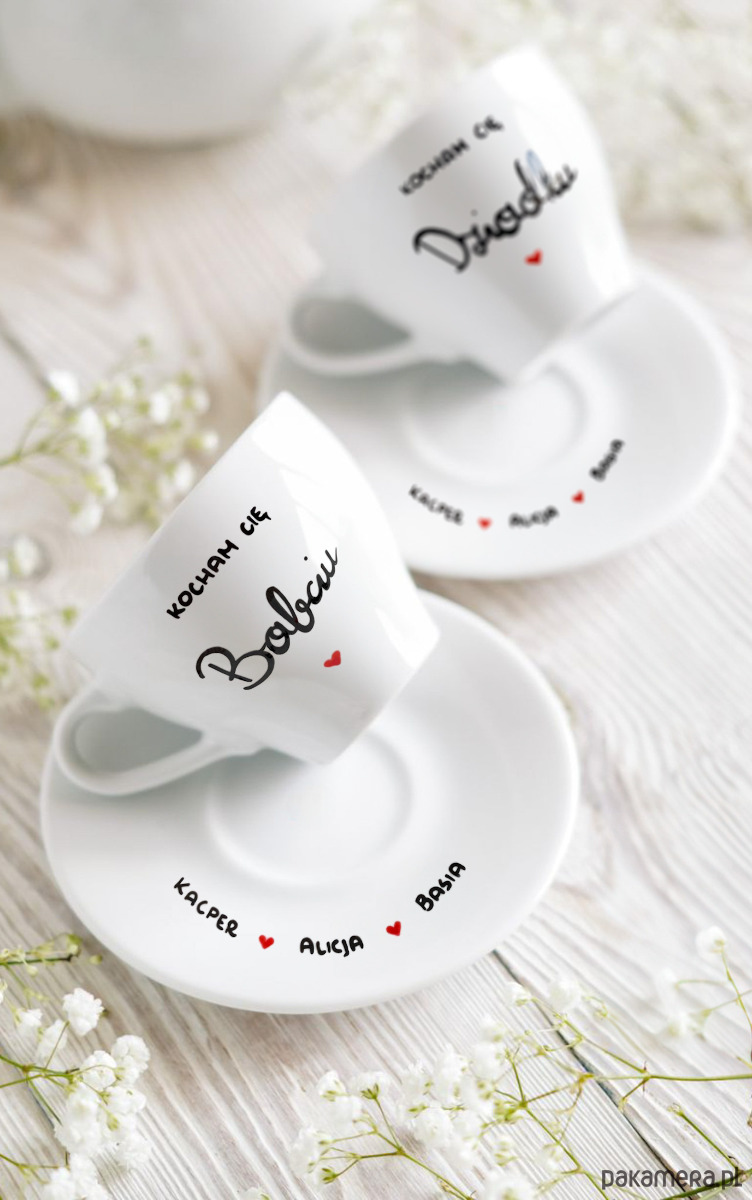 Na spodeczkach filiżanek wpiszemy imiona, podaj je w uwagach do zamówienia.
