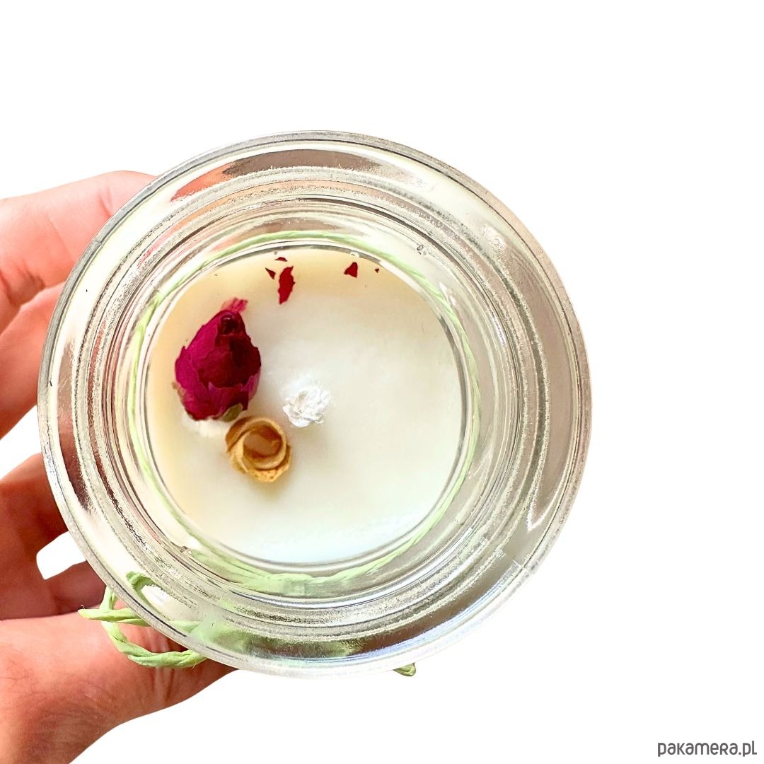 * świeca sojowa Tajemniczy ogród 160 ml. Masz ochotę na relaksujący spacer w głąb Tajemniczego ogrodu? Zamknij oczy i pozwól ponieść się wyobraźni. Intensywny zapach róży, przełamany nutką słodkiej pomarańczy, wprawi w doskonały nastrój zarówno Panie jak i Panów.