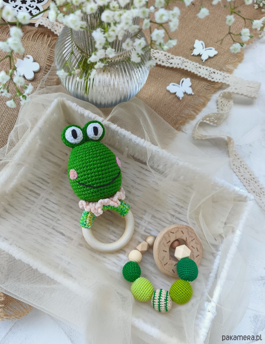 Zestaw gryzaków dla noworodka, Grzechotka żabka, Prezent dla maluszka
