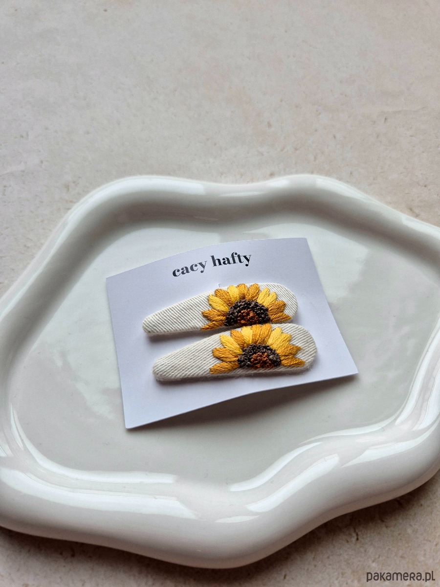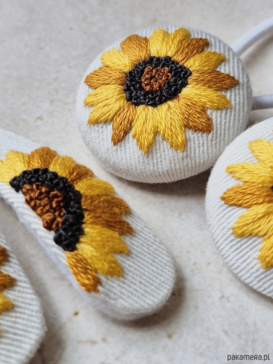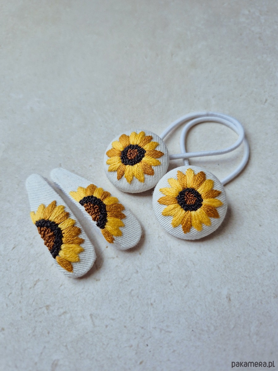 Zestaw haftowanych akcesoriów do włosów ze słonecznikiem