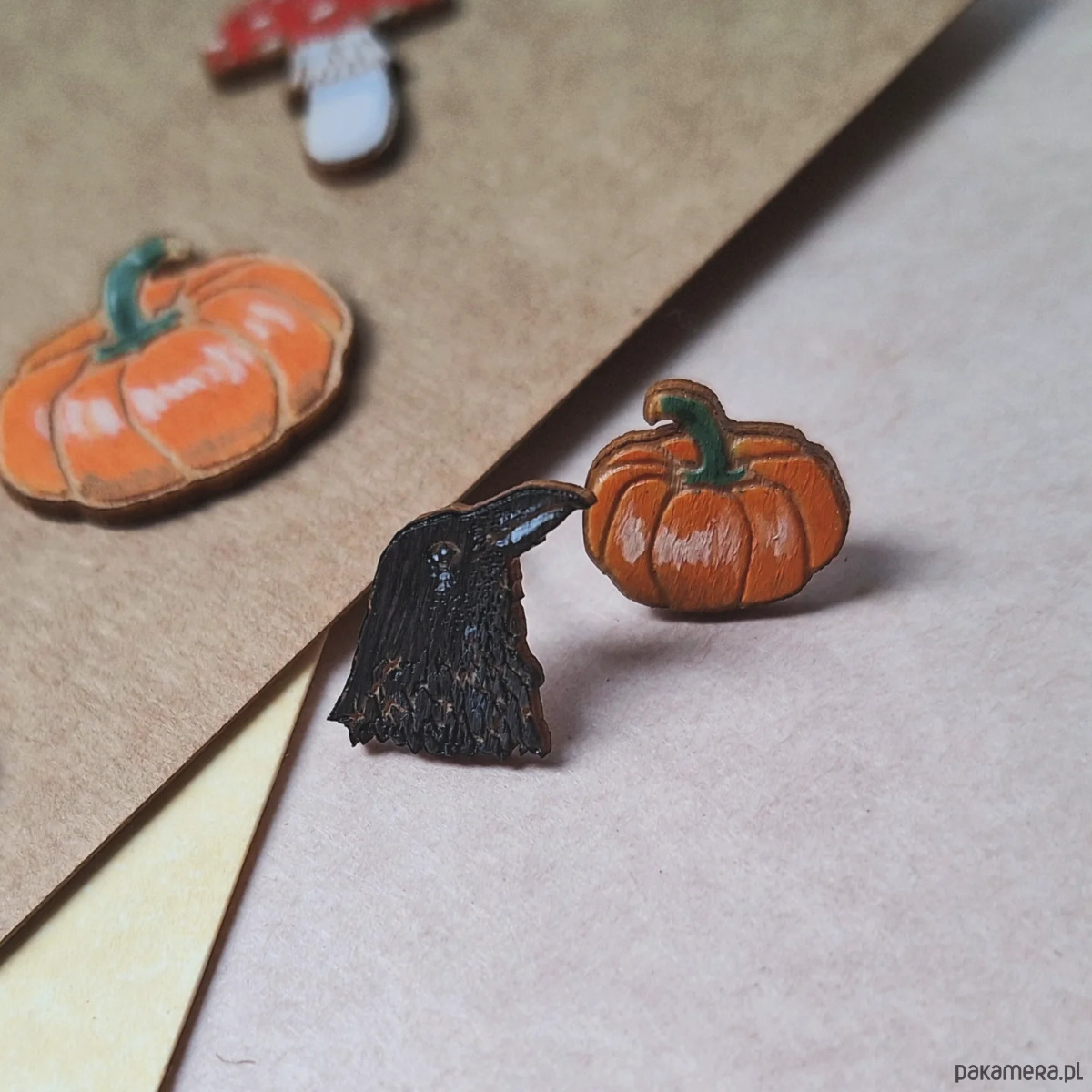 Lekkie kolczyki-sztyfty wykonane na podstawie autorskiego rysunku. Zrobione z drewna i lakierowane. Każda para będzie niepowtarzalna. Wielkość ok 1,5cm długości. Sztyfty nie uczulą, bo są z silikonu!