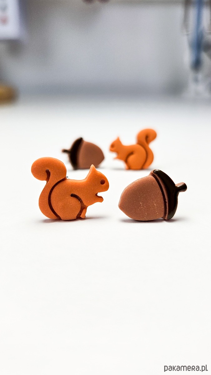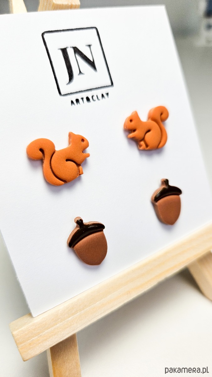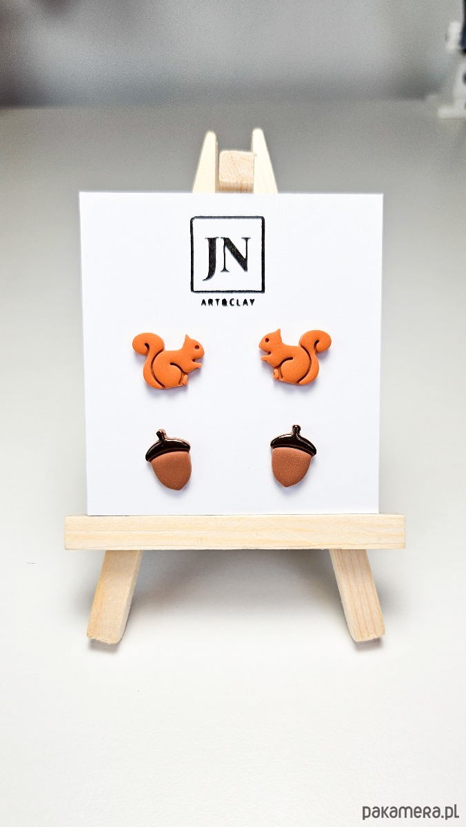 Zestaw jesiennych kolczyków - wiewiórka i żołędzie