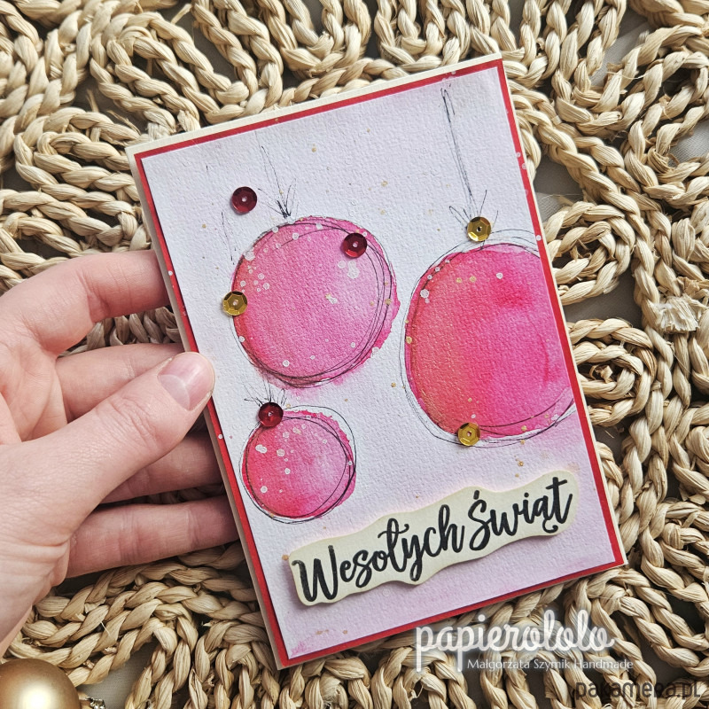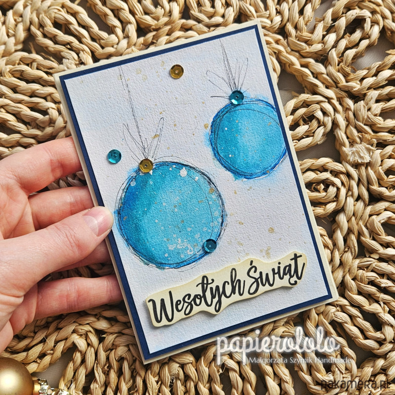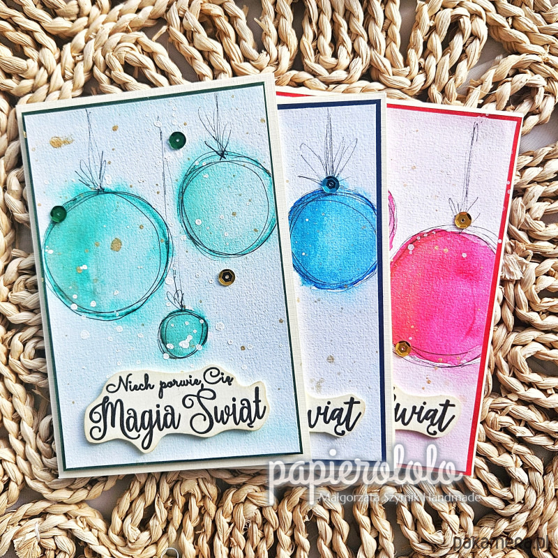 W zestawie 3 kartki malowane ręcznie akwarelami z delikatnym połyskiem i cekinami.