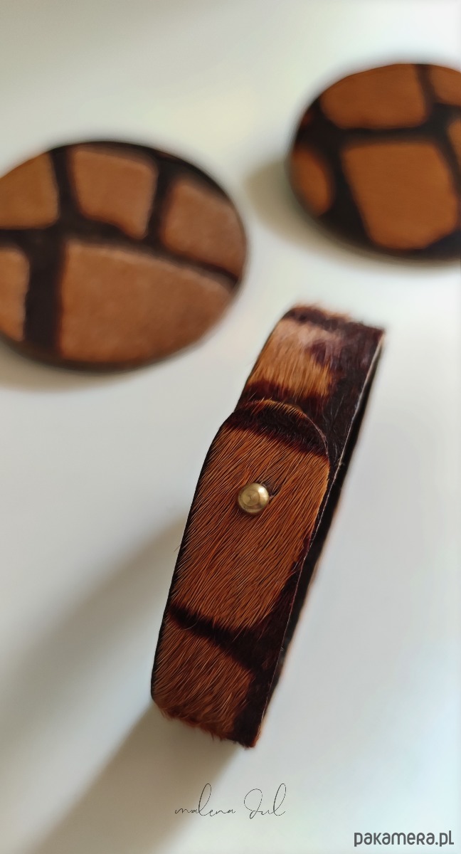 Material - skora naturalna (motyw zwierzęcy, skóra z włosiem - żyrafa)