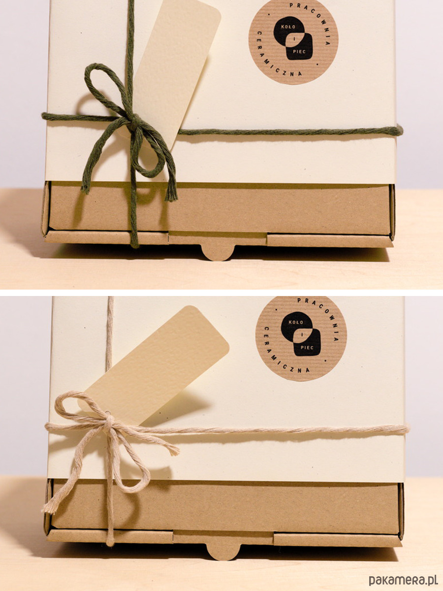 - opakowanie prezentowe - kartonowe pudełko z grubym bawełnianym sznurkiem (ciemno zielonym i kremowym) i karteczką do podpisu. Pudełko zostanie dodatkowo owinięte w brązowy karton dla ochrony. Sznurki i karteczka będą w środku pudełka.