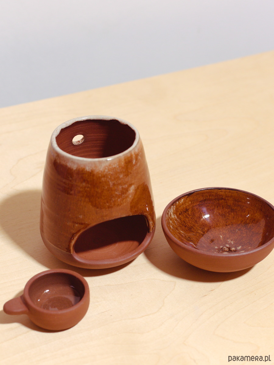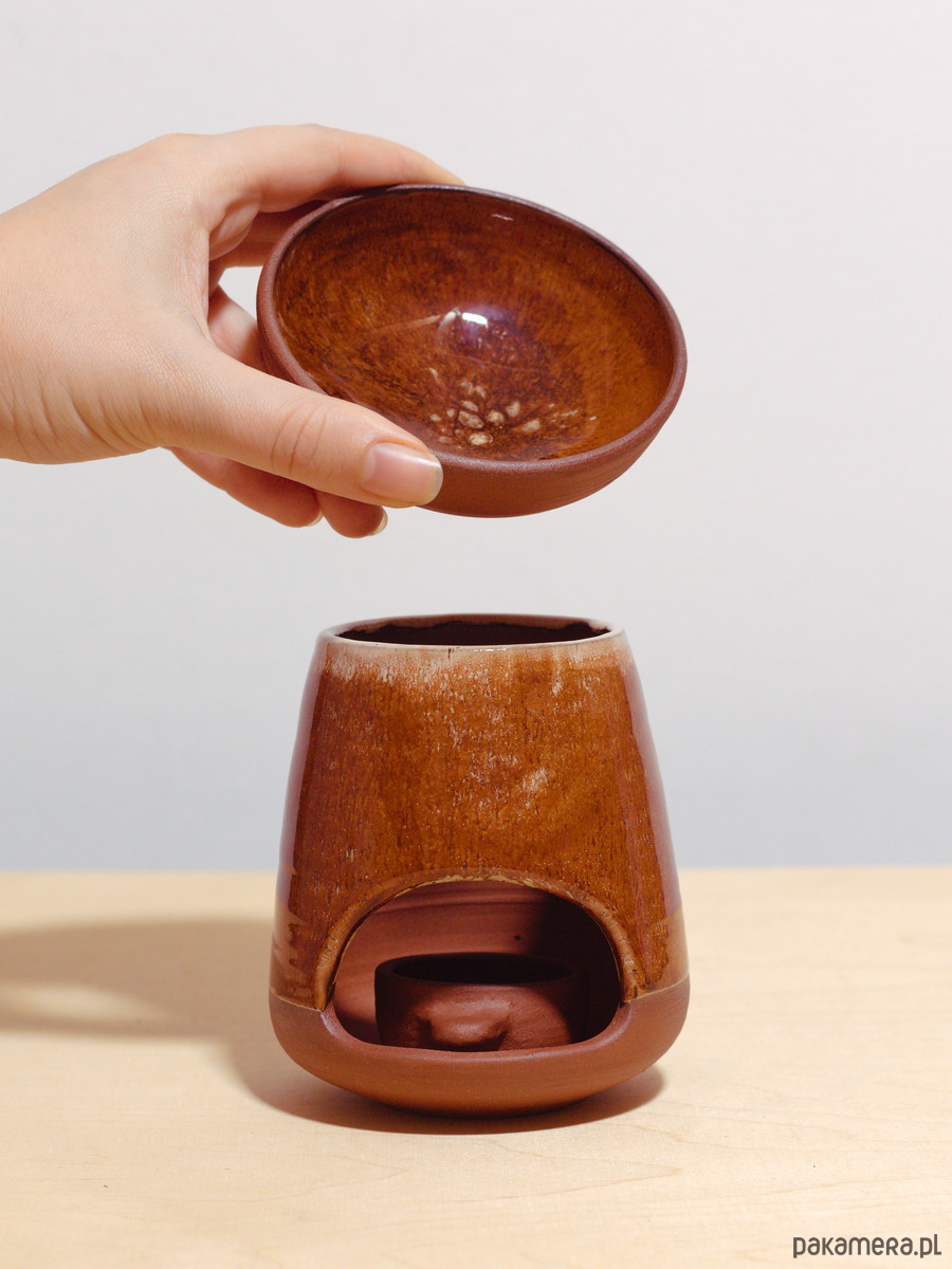 - ręcznie toczony 3-częściowy ceramiczny kominek w kolorze Czekoladowy Deszcz