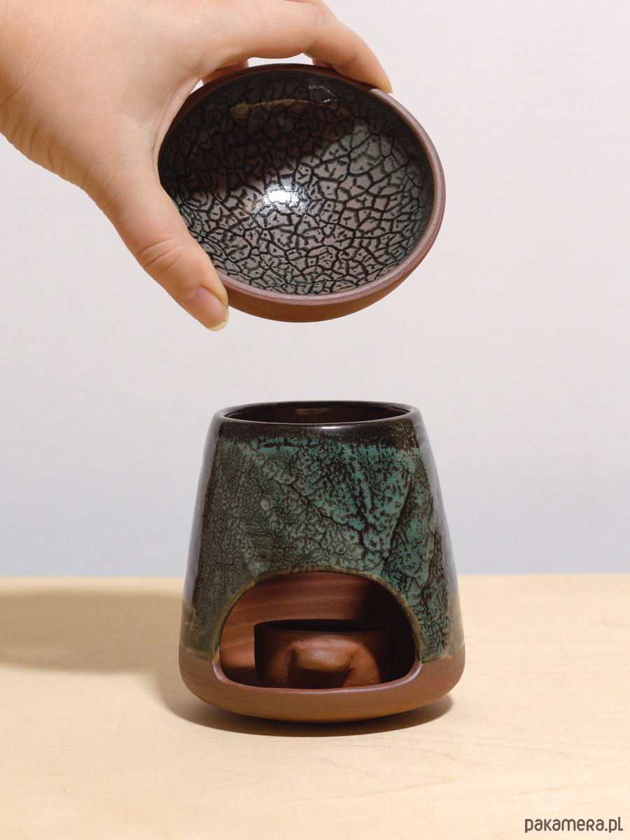 - ręcznie toczony 3-częściowy ceramiczny kominek w kolorze Iglasty Las