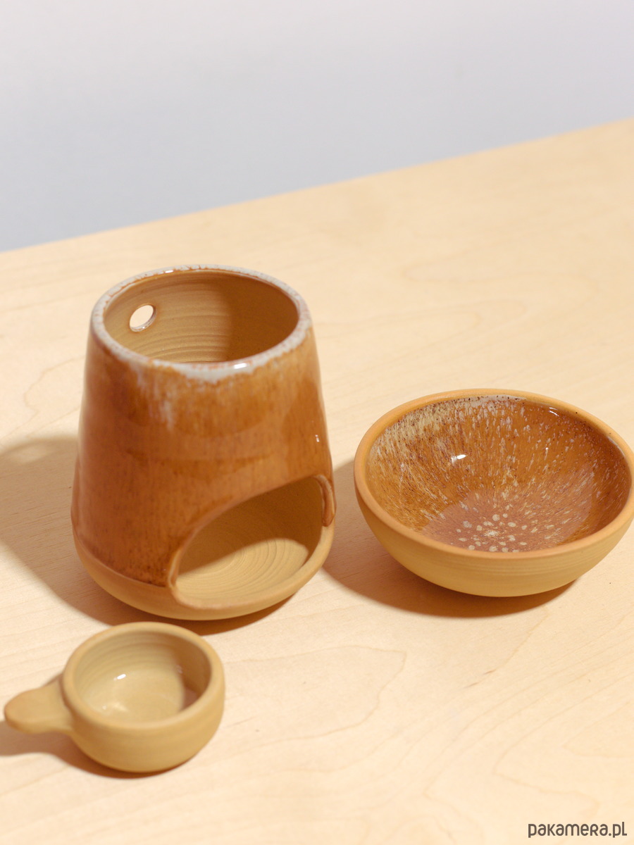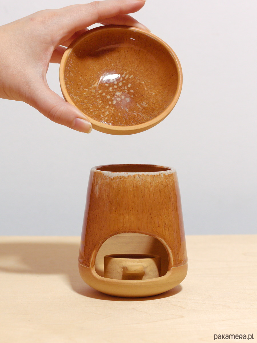 - ręcznie toczony 3-częściowy ceramiczny kominek w kolorze Solony Karmel