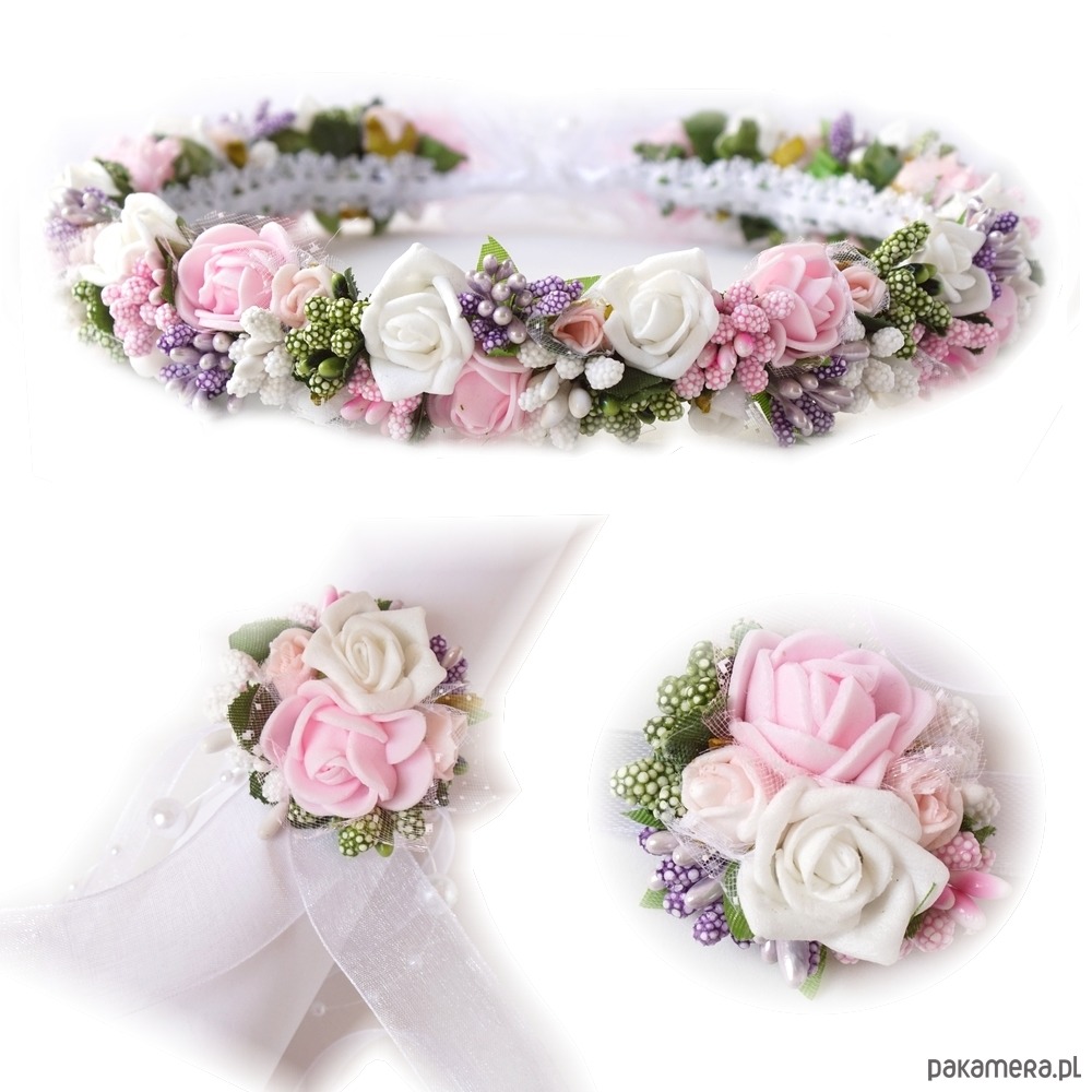 Zestaw komunijny 2022 wianek komunijny / bransoletka / ozdoba na świecę.