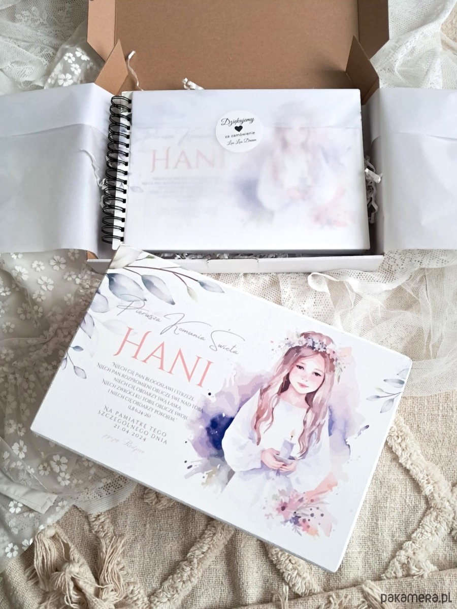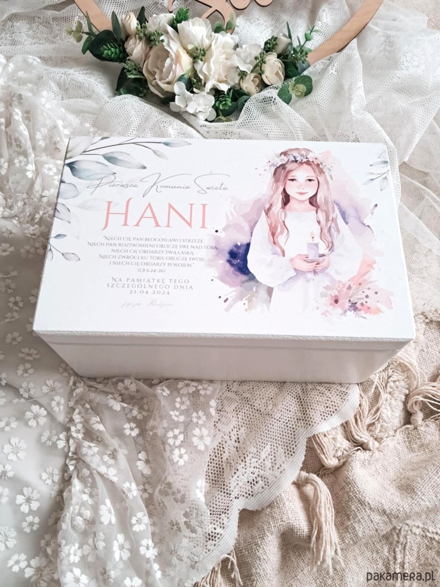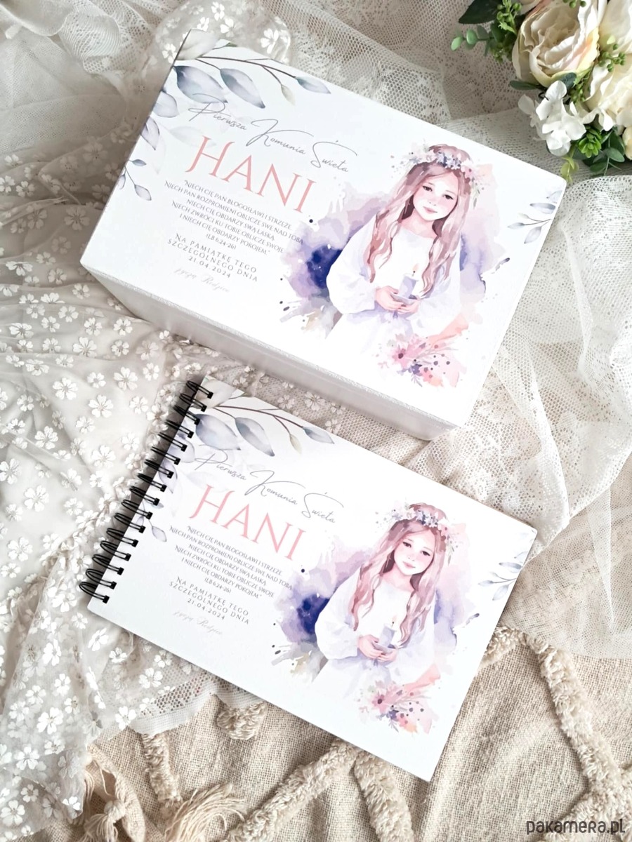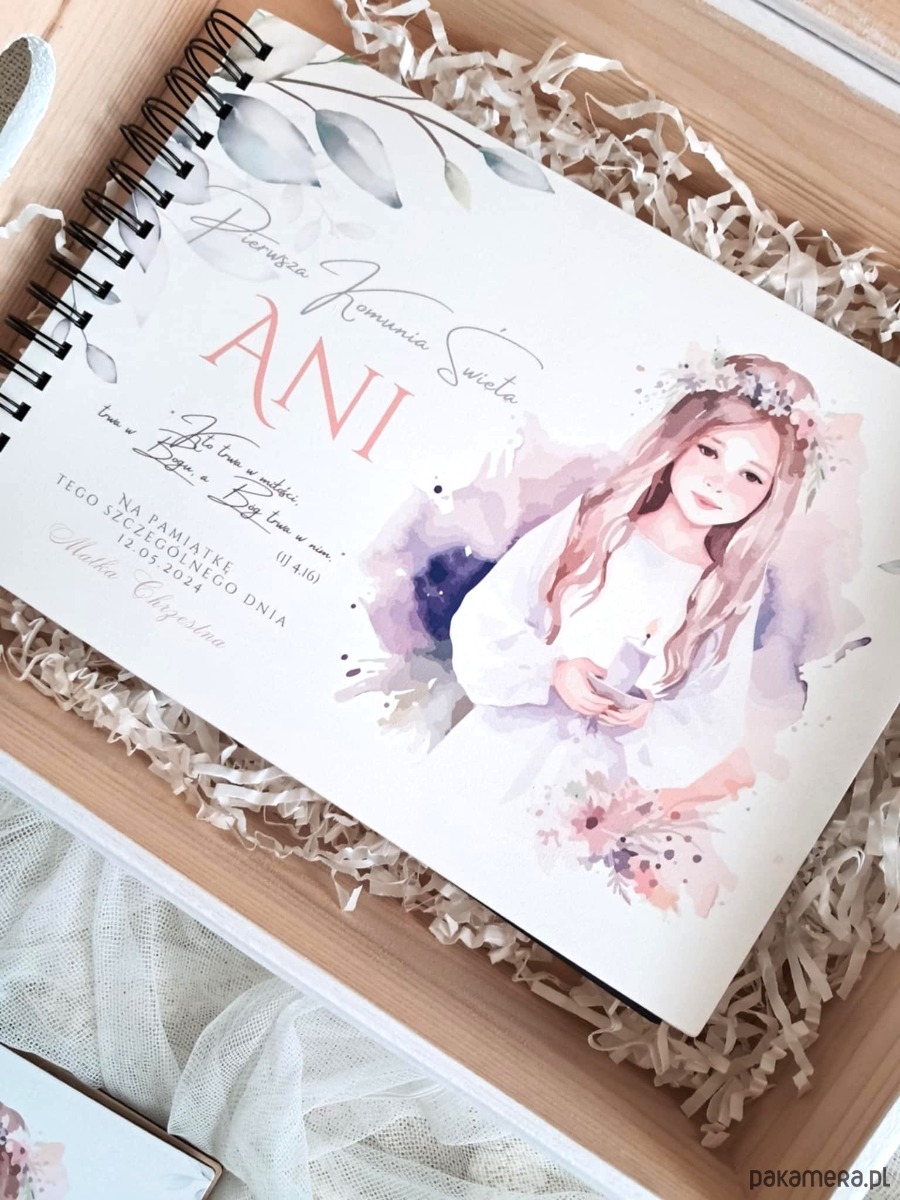 Szukasz idealnego prezentu na Pierwszą Komunię Świętą, który na zawsze utrwali wspomnienia z tego niezwykłego dnia? Mamy dla Ciebie coś wyjątkowego! Prezentujemy personalizowany zestaw komunijny, składający się z drewnianego kuferka wspomnień oraz drewnianego albumu na zdjęcia.
