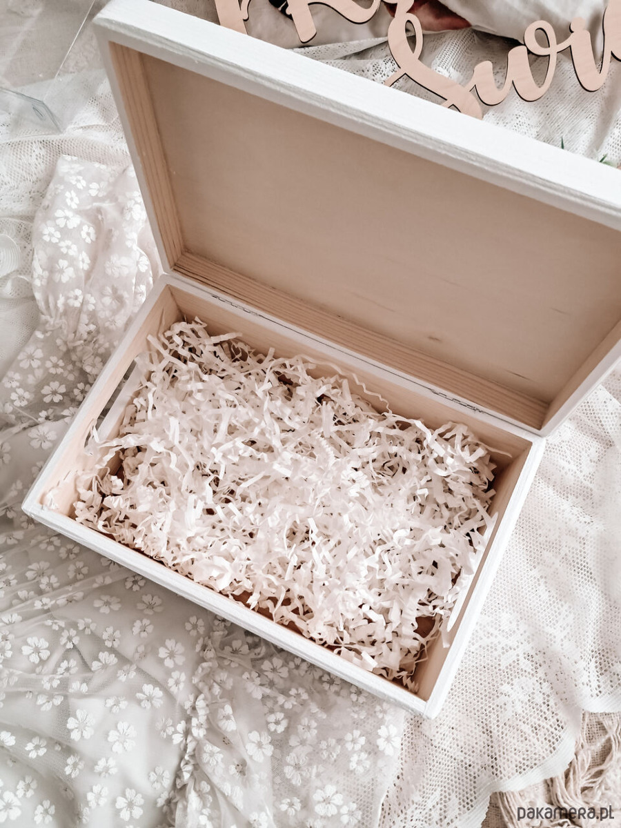 Kuferek jest estetycznie zapakowany i gotowy do wręczenia.