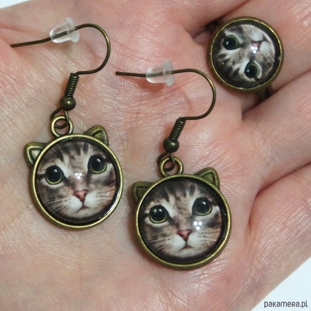 Zestaw Kot tygrysek - kolczyki i pierścionek