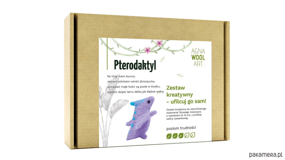 Zestaw „Pterodaktyl” pozwoli Ci odkryć tajniki filcowania i stworzyć wyjątkowego dinozaura, który przeniesie Cię w odległe czasy prehistorii. Wełna, z której wykonasz swojego pterodaktyla, jest starannie dobrana, by efekt końcowy był niesamowity.