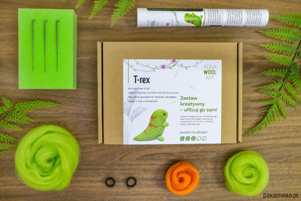 Stwórz swojego T-Rexa i odkryj radość płynącą z pracy z wełną! To idealna forma spędzania czasu zarówno dla dorosłych, jak i dzieci (od 6 roku życia) pod opieką dorosłych.